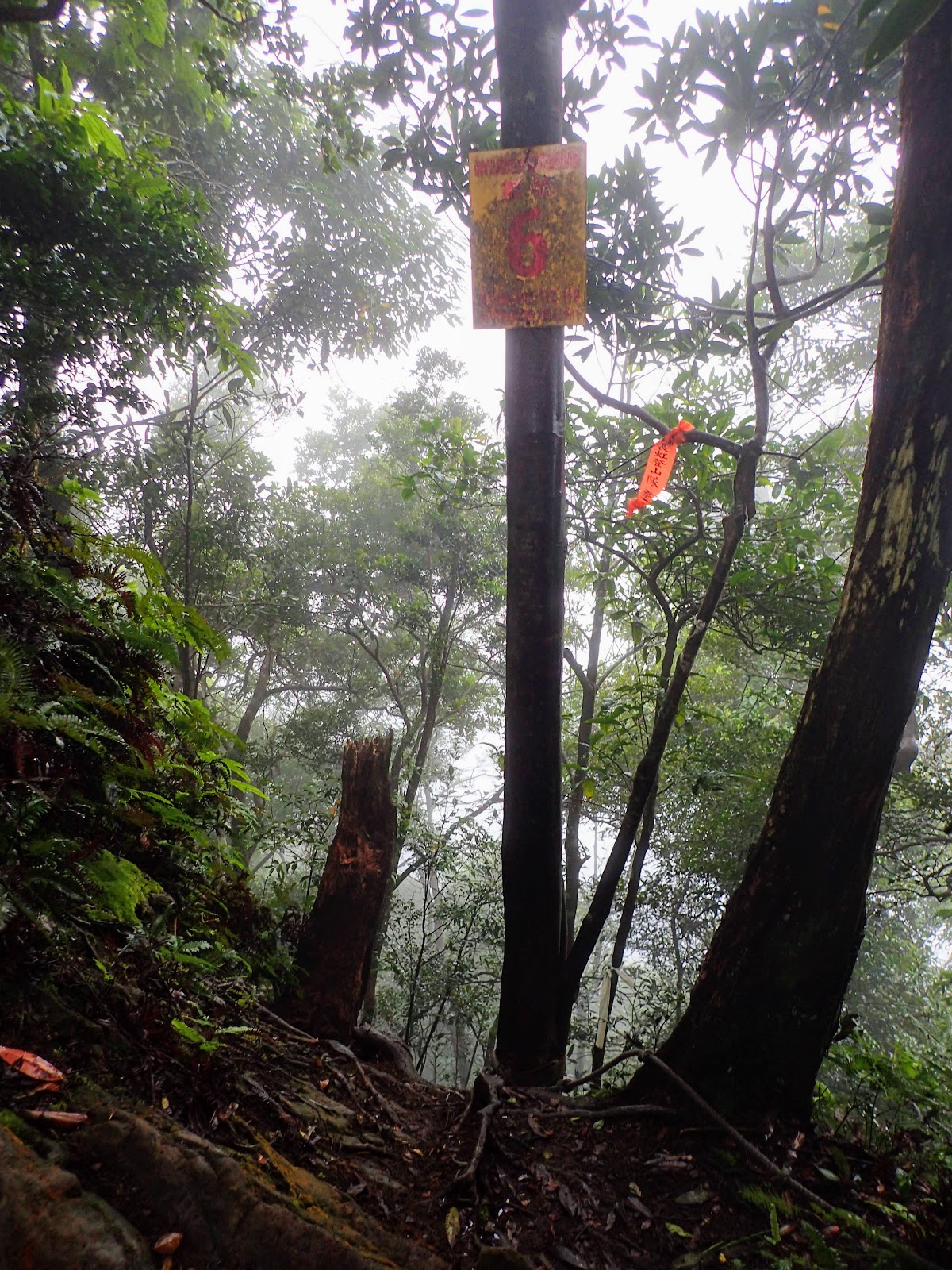 攀爬了一段硬陡的峭壁後上了6號