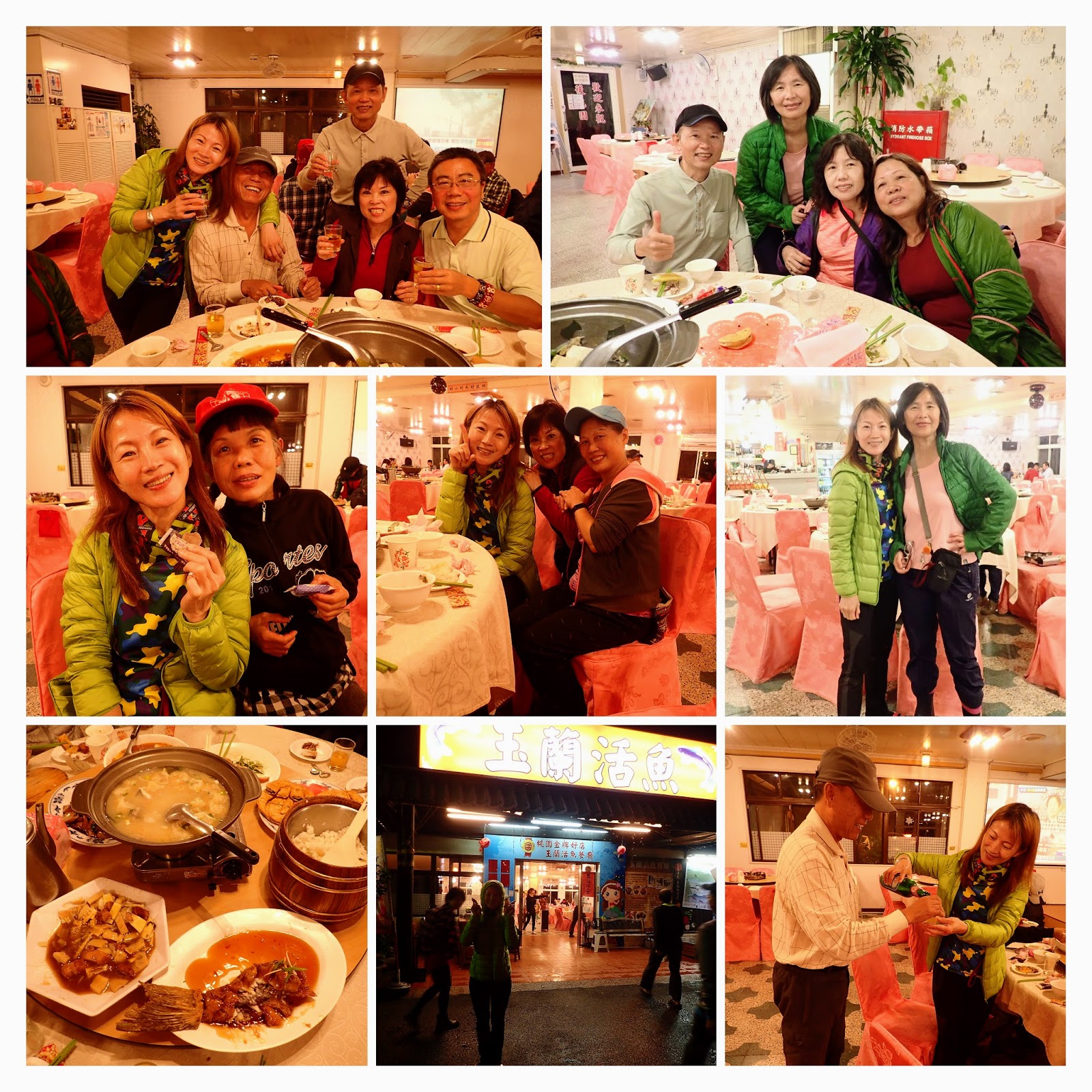 上車後換上乾爽衣服, 一路睡到石門的桃園金牌好店玉蘭活魚餐廳吃慶功宴, 好吃喔, 我跟琴妹兩人胃口大開! 吃飽跟一日遊的老友們拍照留念, 說真的, 這些人不夠意思, 一個個跑的比誰都還快, 哼
