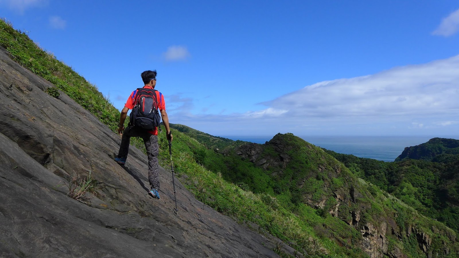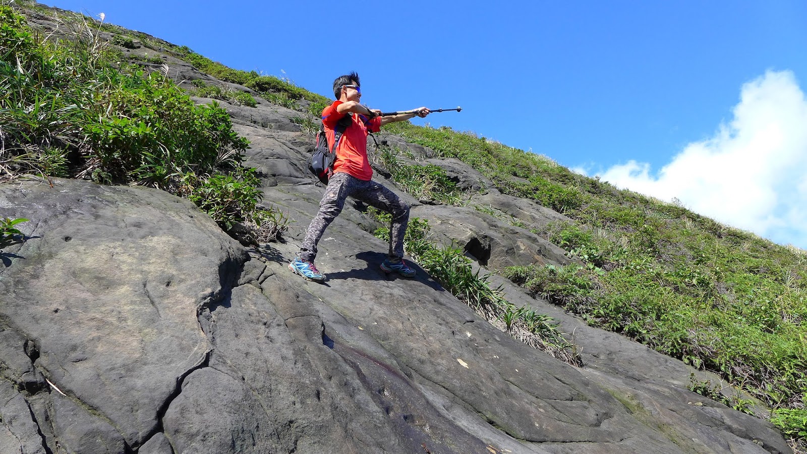 這峭壁會難爬嗎,只要不會怕高,說真話蠻好爬的,有大半時間我不算是爬,是當成比較斜的路"走"上去的,要上去稜線的距離並不長,趁天氣好找自己喜歡的位置拍照囉,也算彌補第一次天氣不佳的景色。