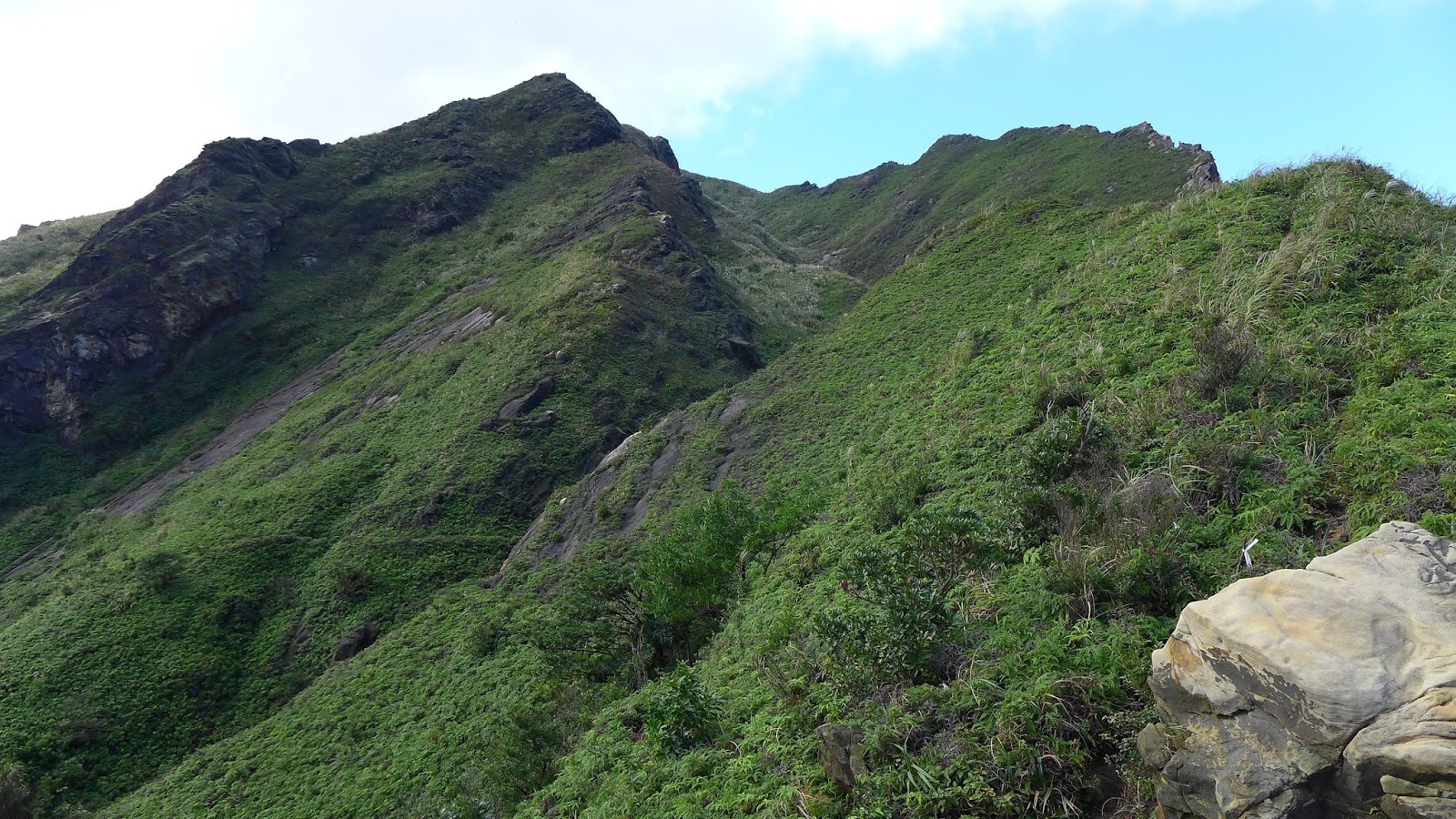 繼續前進,原本要到十字叉路左轉往小錐麓,現在有一條腰繞路直接繞過一座小山頭接上小錐麓,接上後有一條明顯的路徑往鋸齒稜的稜線,那是新整理出來的山徑,不過我個人更愛的是從最傳統的大峭壁爬上去,由溪谷爬上來就是接到這邊。
