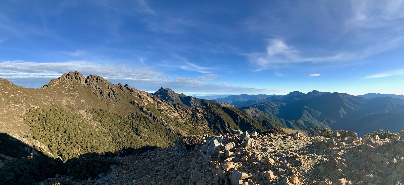 從3667岩峰開始,就是一路下坡再下坡,嚴格來說,這個下坡並不算難走,不過可能因為昨夜的高山反應,再加上今天天氣真的太好整個大流汗,雖然背了2.5L我還是覺得不夠喝,曬到頭昏腦脹,腳步也越走越慢,從2.7K->1.2K這段我就花快兩小時,內心則是不斷質疑玉管處的里程牌是不是有誤差,看著剛才走下來的假山頭像一堵牆,我已經不敢想回程時會是怎樣的慘況。