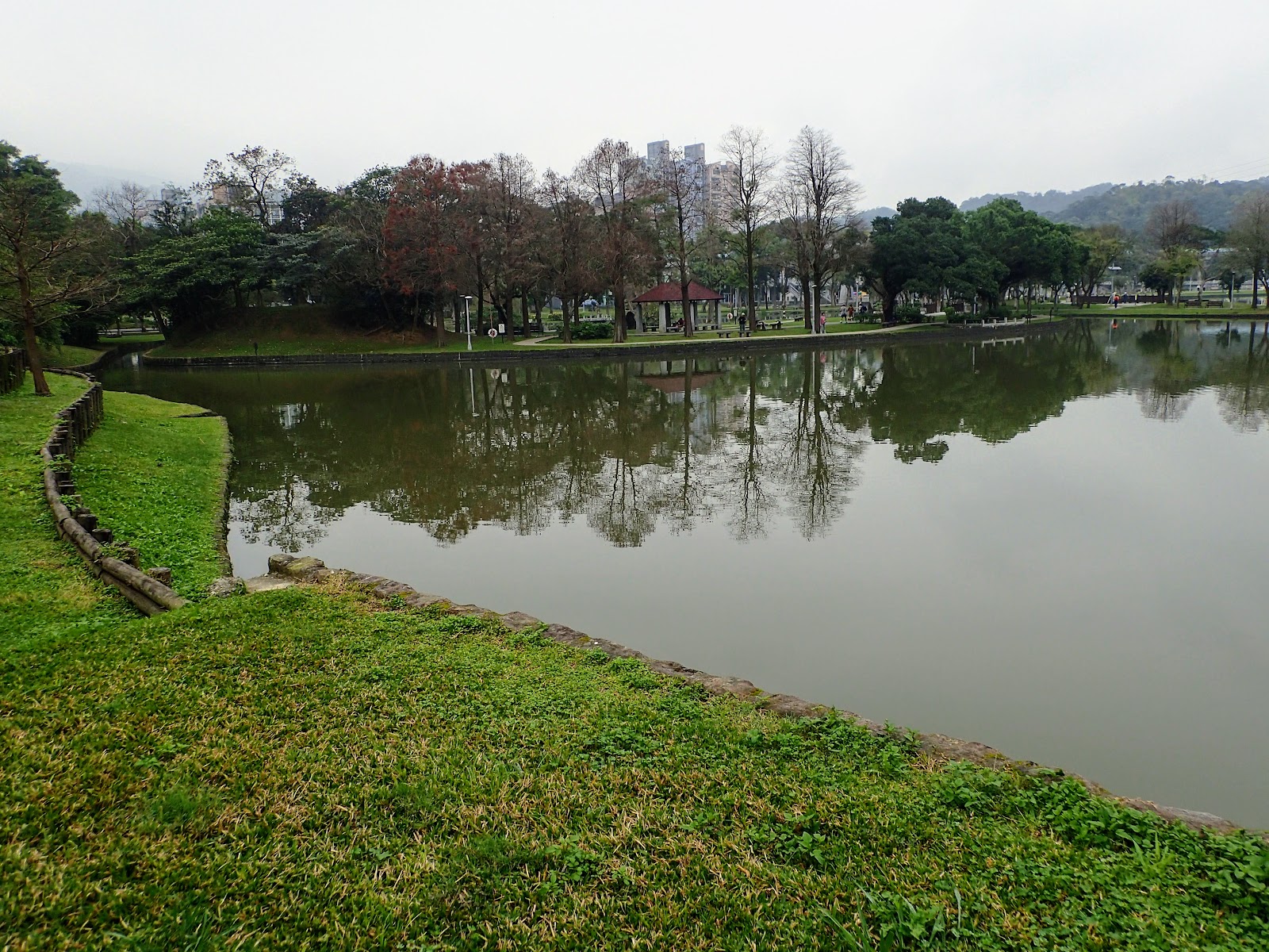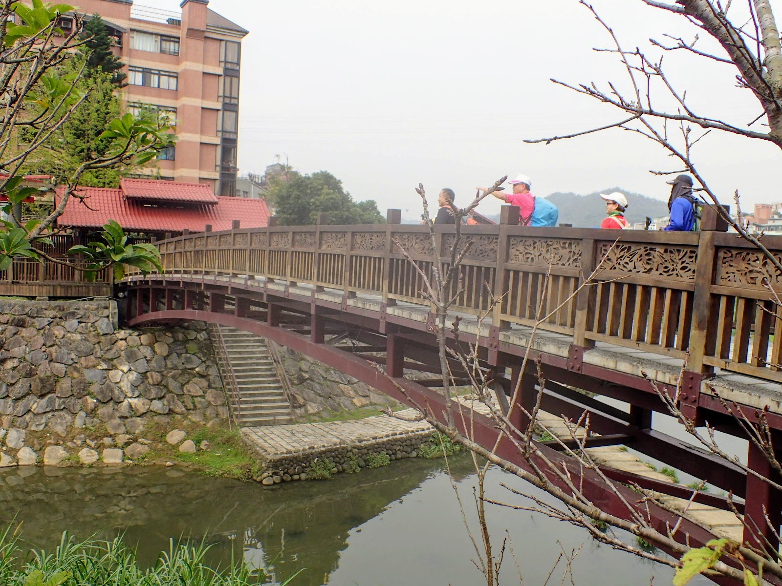 8:00大湖公園捷運站2號出口集合後沿著公園旁邊走, 拱橋旁落羽松映著湖面倒影, 透著優雅沉穩的風情, 可惜的是灰矇矇的天空