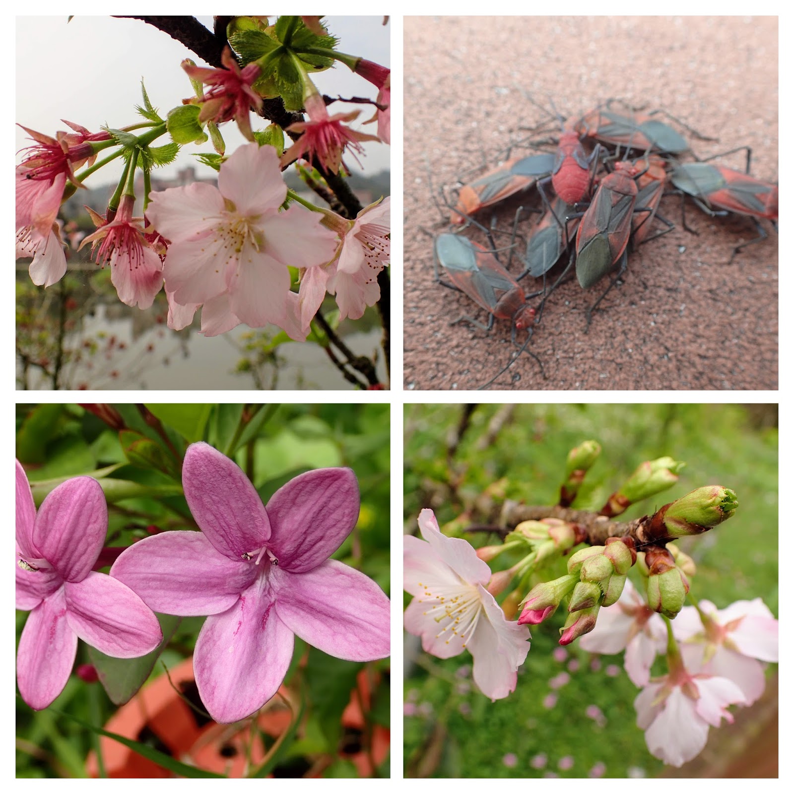 觀景台下幾株櫻花正盛開, 又是拍到腰閃到