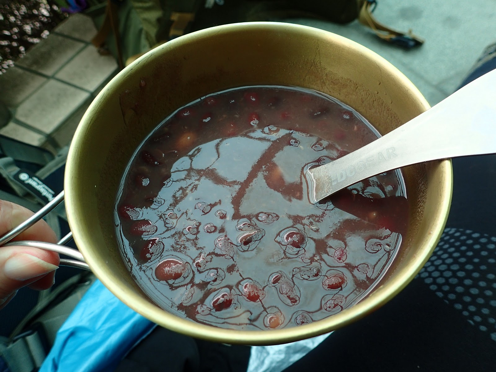 吃了阿基師請的滷蛋, 哇! 夠味好吃, 又喝了國忠同學請的紅豆湯, 肉餅, 好茶, 大哥請的咖啡...May姐, 琴妹帶來的水果, 好飽, 看來爬山想瘦很難...