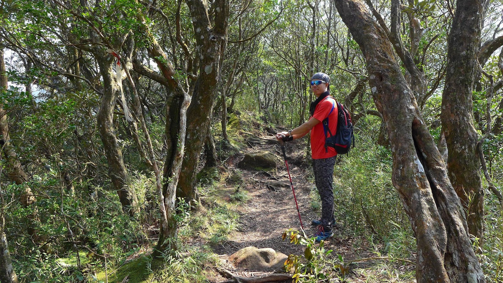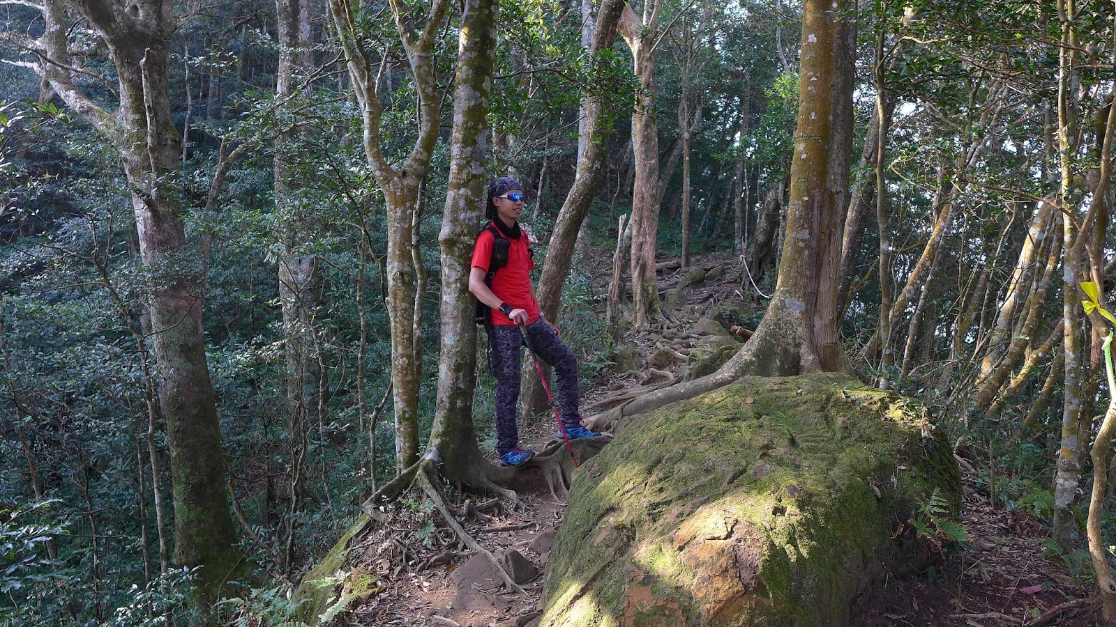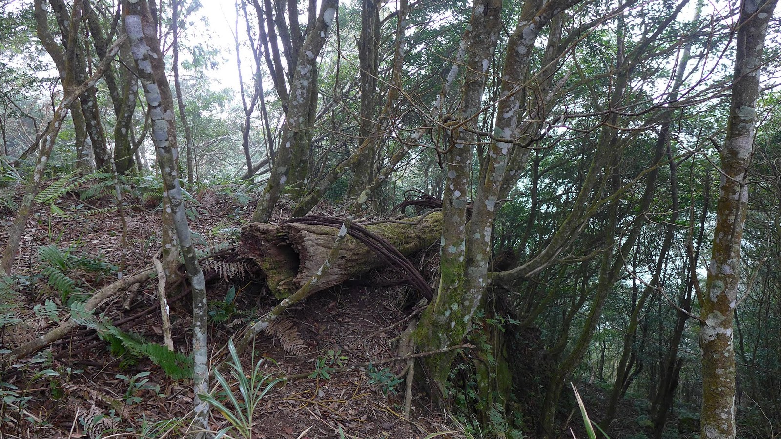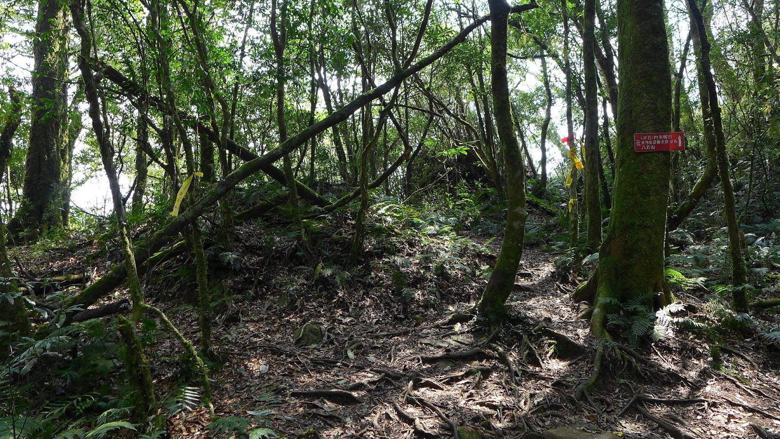 此處上稜線上升量300左右,沿途都在樹林內,往稜線過程左手邊會有一條通往狂風嶺的山徑,下午預計會從那接回來,離今天目標還好長一段路,開始快馬加鞭到稜線。