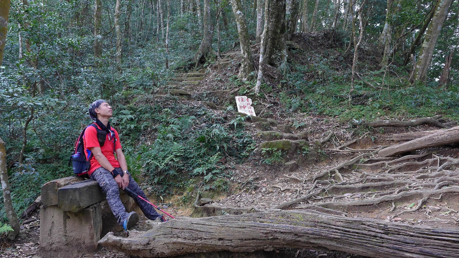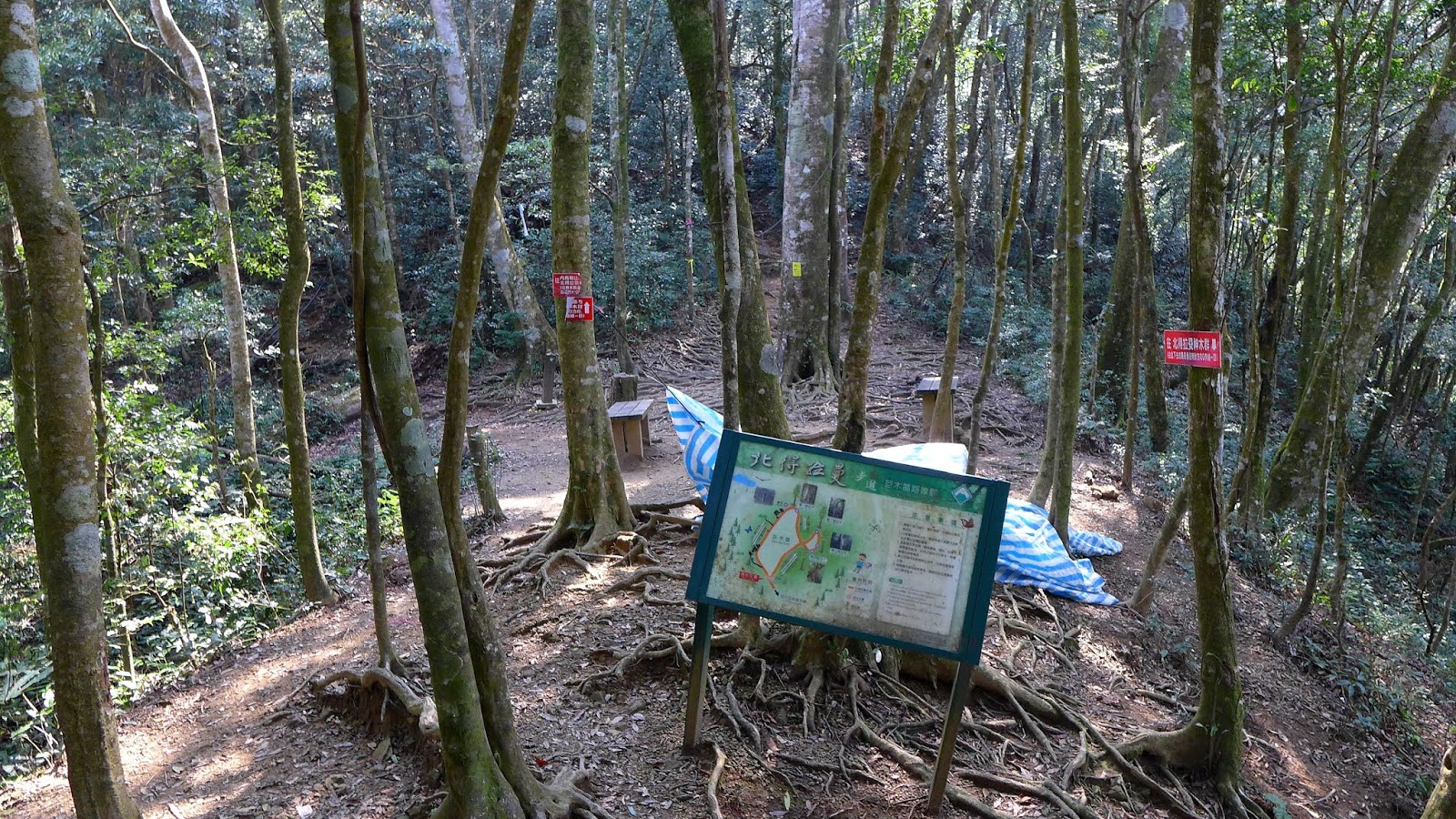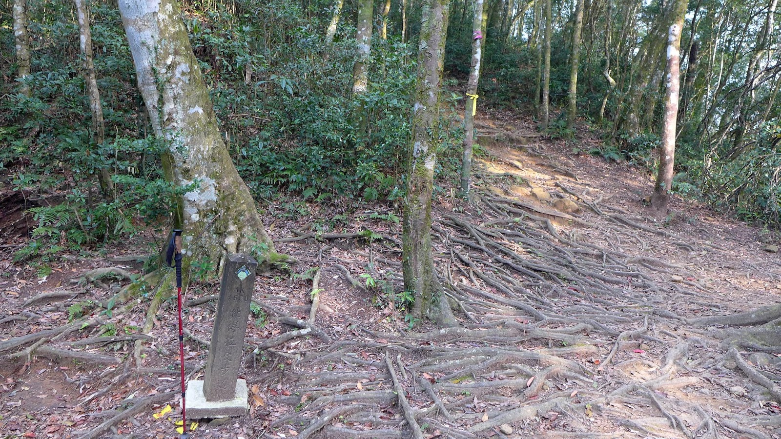 神木群環狀步道入口在1.6K處,由於每100M就有一支指標樁,走著走著隨著里程增加,很快的就通過這段陡坡,這一段中途有2處休息點。