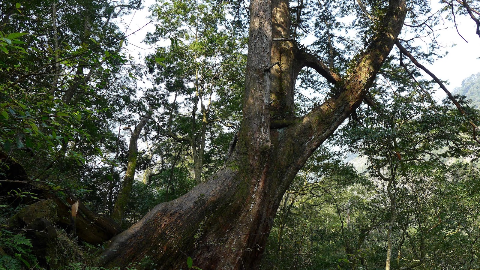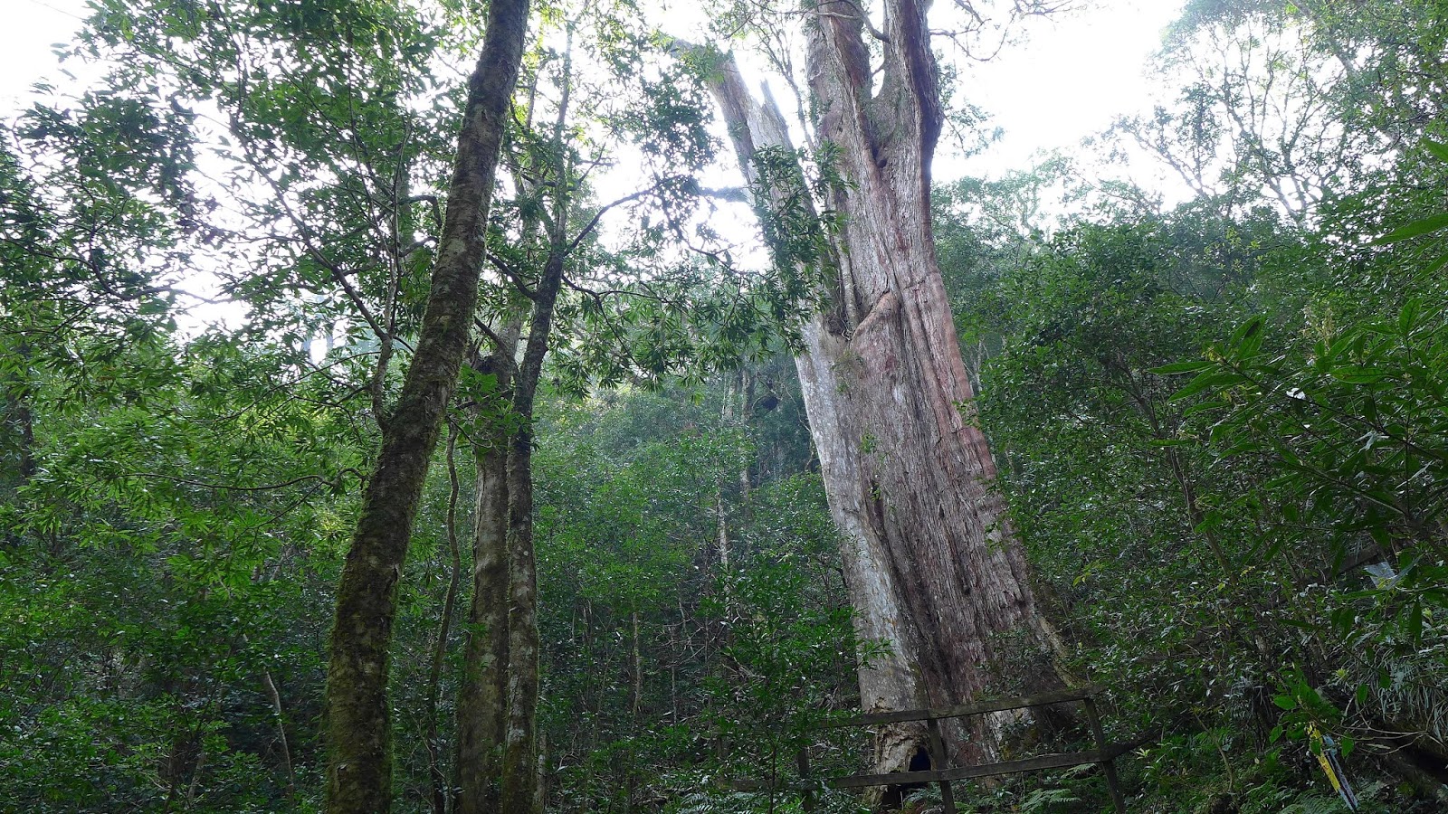 小瀑布旁有一條叉路可直接陡上接內鳥嘴山,這次不取,先順著環型步道走,北得拉曼這一區約有近200顆紅檜,其中最具代表性就是這4顆神木,環型步道中還可以經過2顆不算小的巨木。