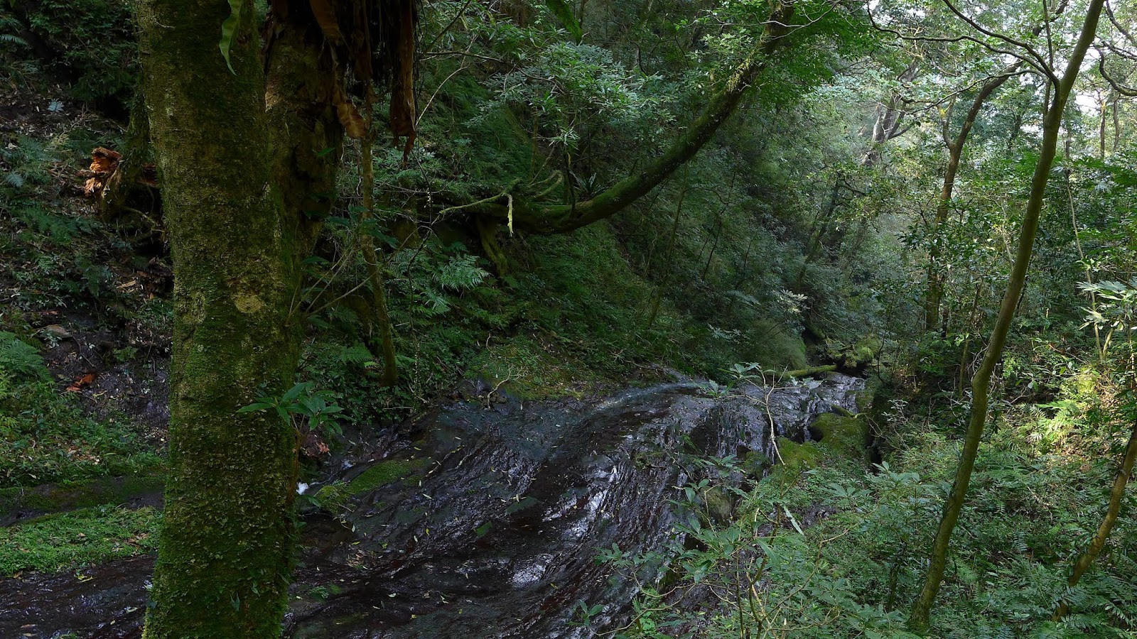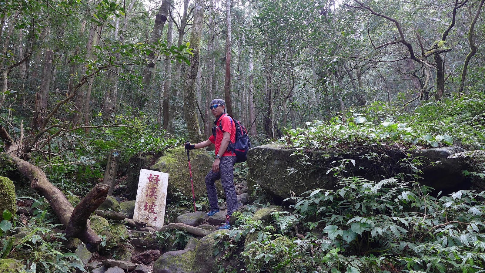 陡下結束,接下來的路坡度緩和許多,這段陡下一共滑倒兩次