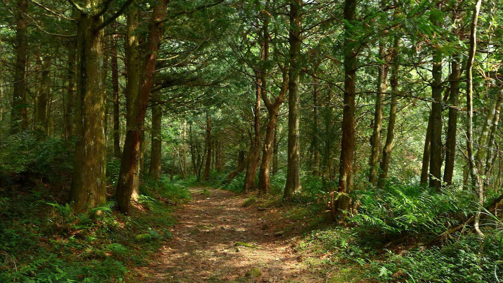 林道都是過去伐木時期所留下的,砍伐後復育的人造林,林相幾乎是杉林為主,這裡也不例外,路徑全程多為樹根山徑,偶有階梯。