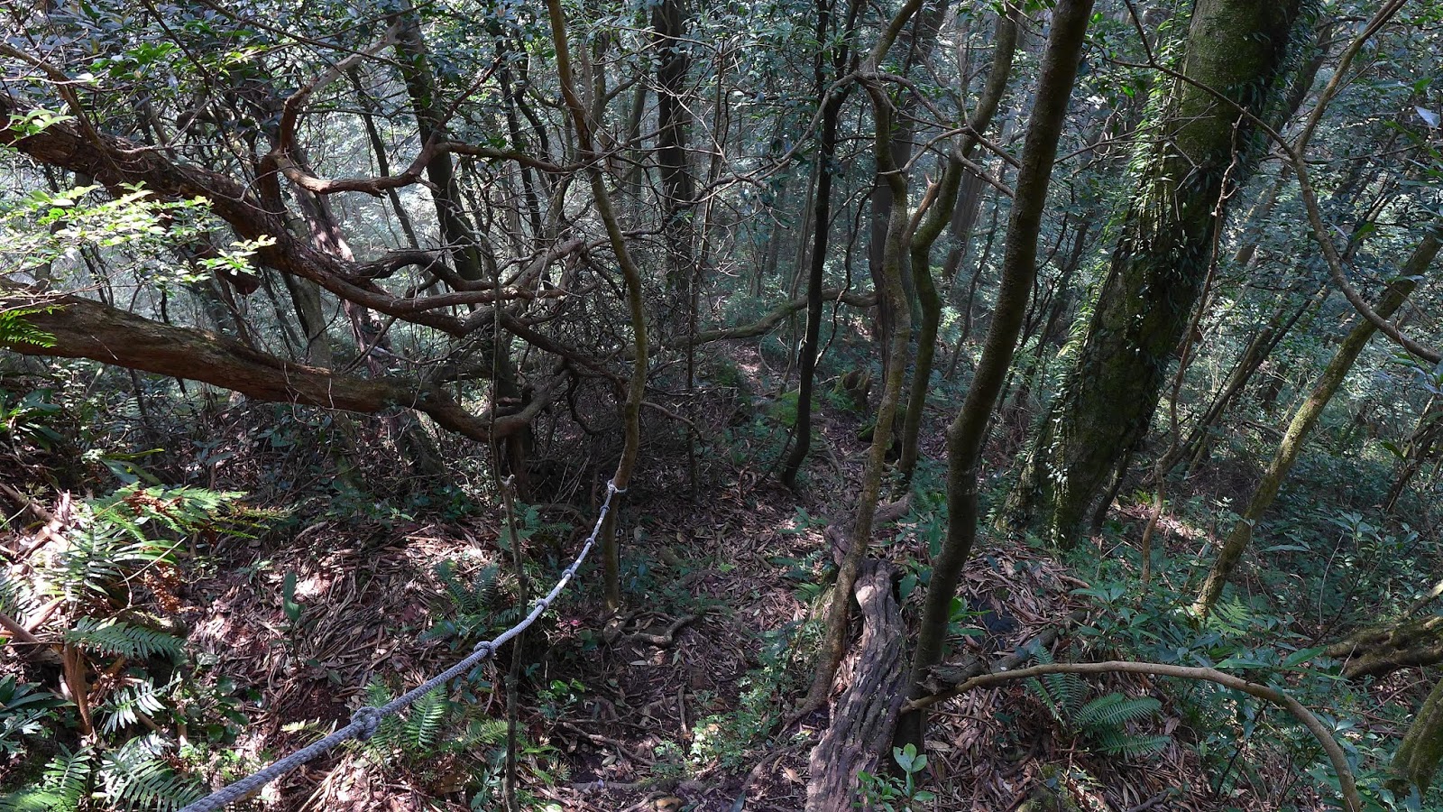 緊接著,下往水田林道的下坡,真的有夠陡,雖然看等高線圖早知道很陡了,但實際好幾處幾乎快垂直,從這方向要上貴妃山的坡度更加潑辣,這是誰家的貴妃呀....。