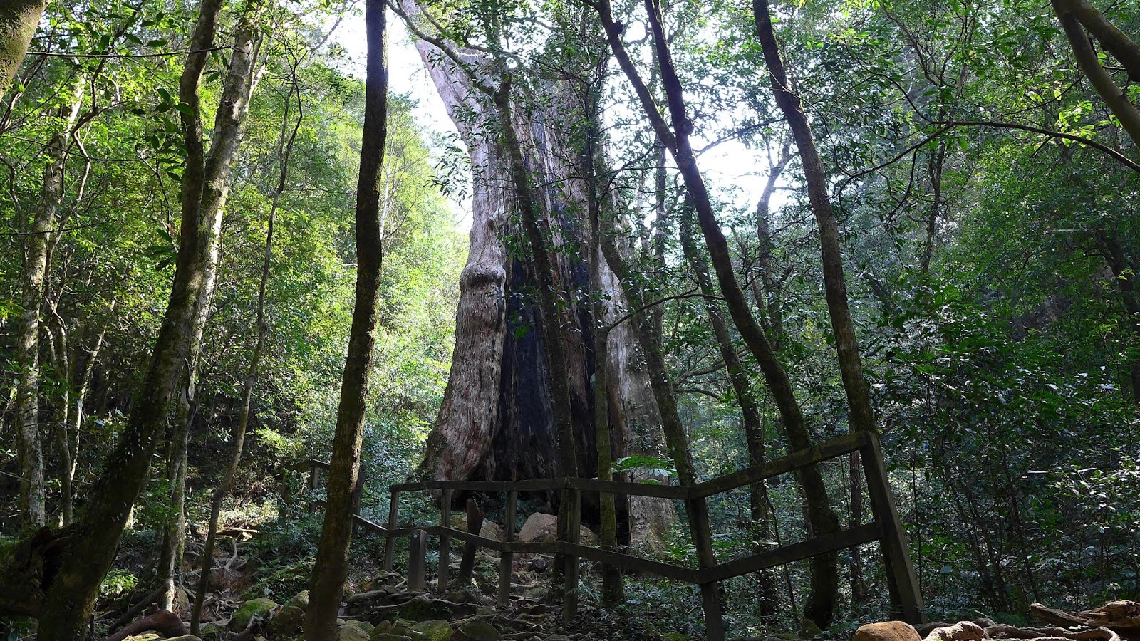 回到叉路,續行往1號神木,爬一段上坡就可看到,1號整個來說不高,但樹徑很寬,也不是包成圓圓一顆,而是有個缺口,像在擁抱一樣。