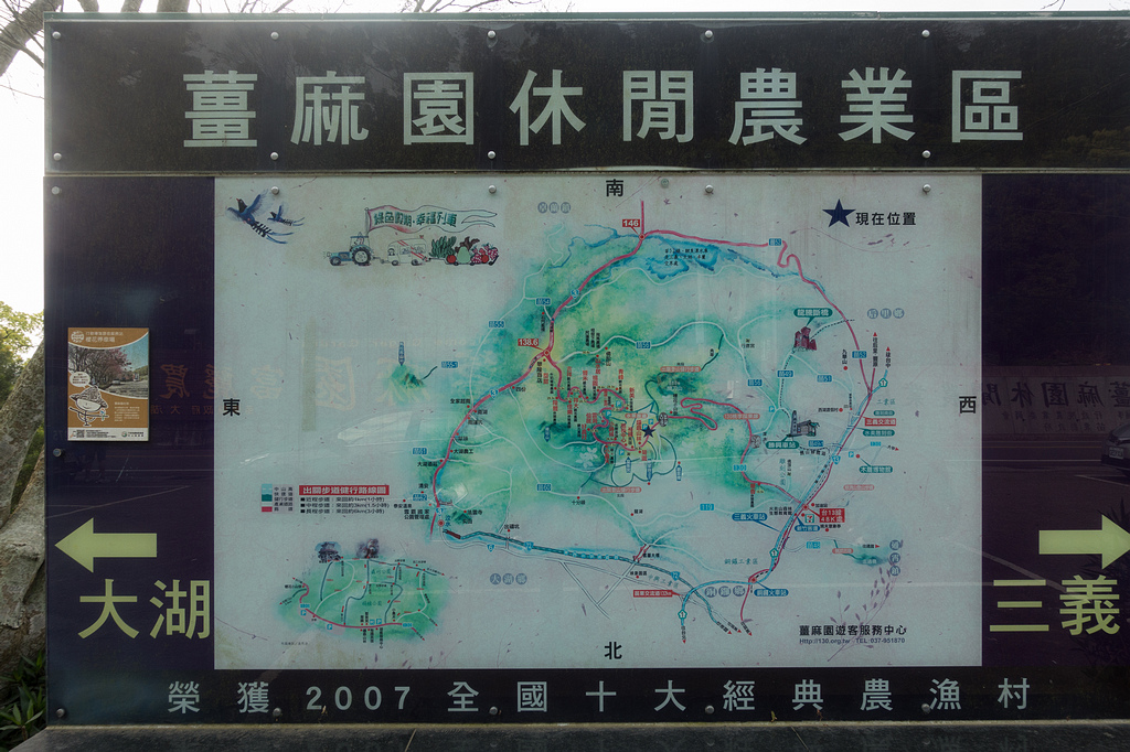 車行經石岡、卓蘭後往大湖方向走台三線,便可以來到「薑麻園」。