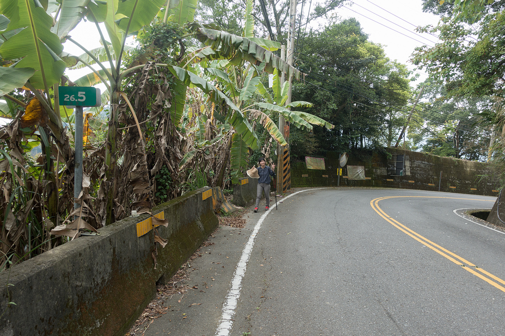 在130縣道的26.7K處停好車後,接下來往三義方向步行約一百公尺,過了這個彎後就是入口處了。