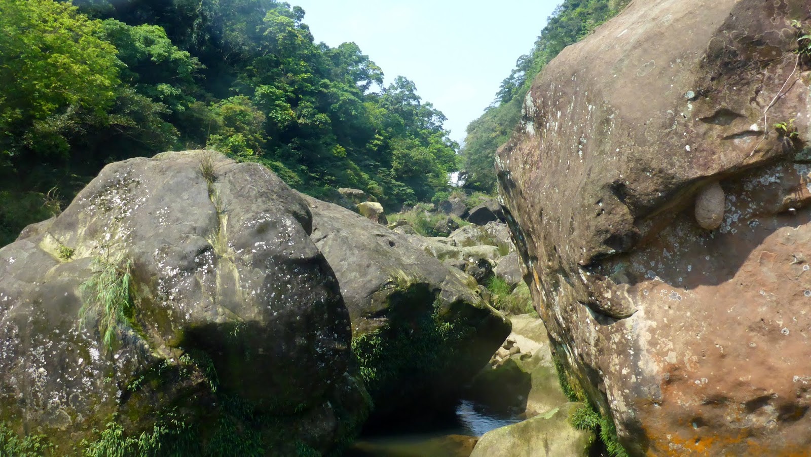 看衛星圖在瀑潭前會有一堆石頭,但現場一看真是一個大驚歎號,根本是巨石陣,簡直就像是守在瀑前的關卡一樣,一路爬過去,從瞄到瀑簾開始距離大概不到100M,卻是時間花最久的。