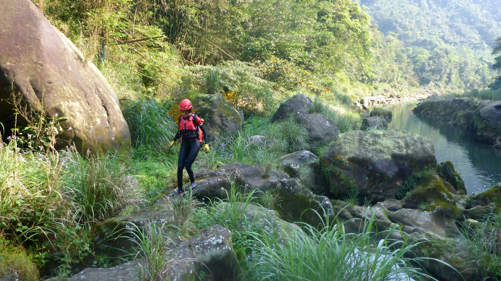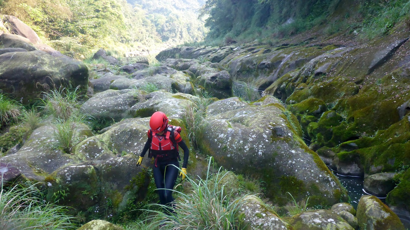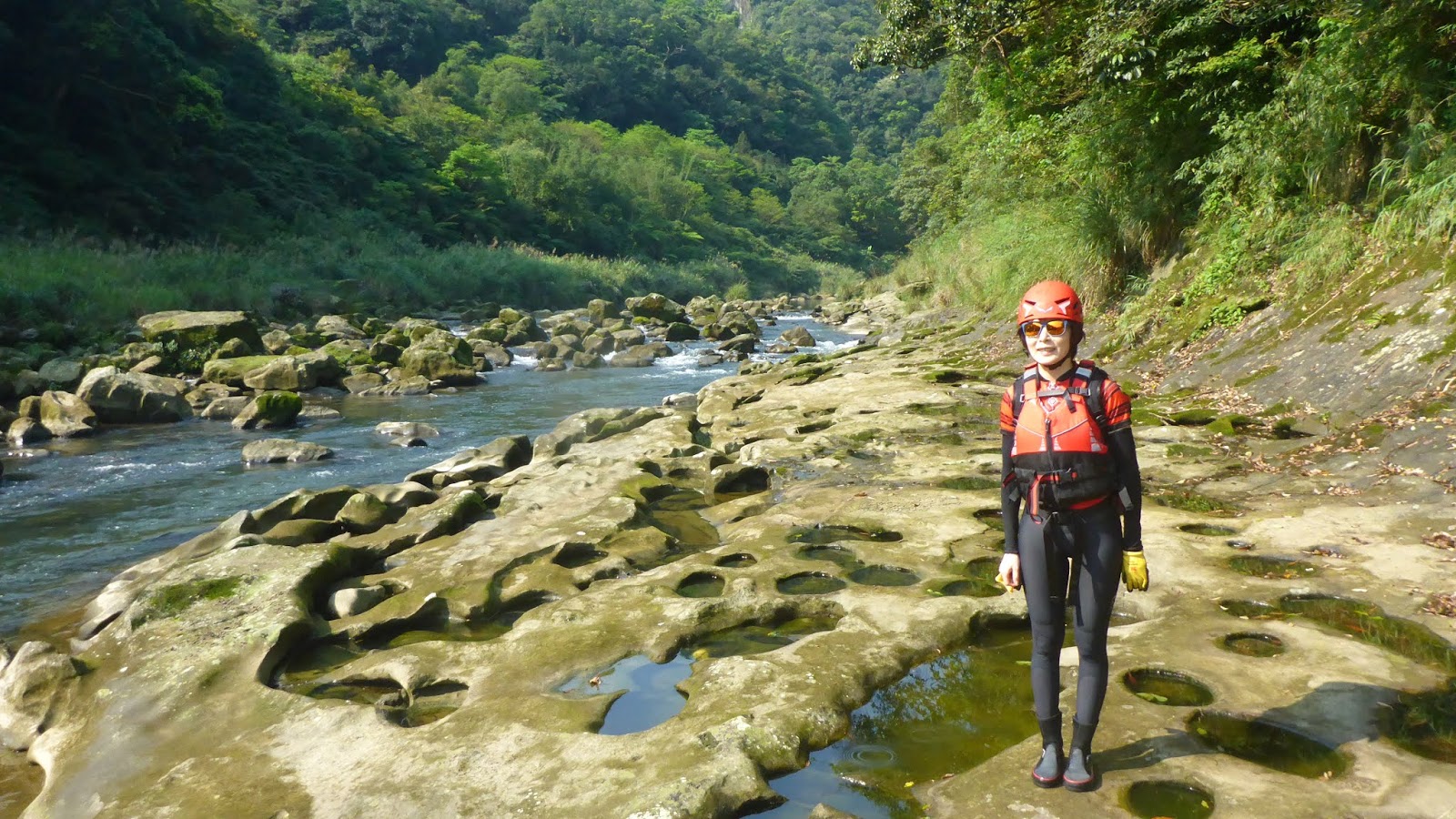 這離河面較高的地方就沒那麼滑,前頭剛下大華壺穴那可是超滑的