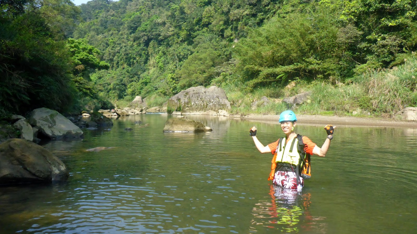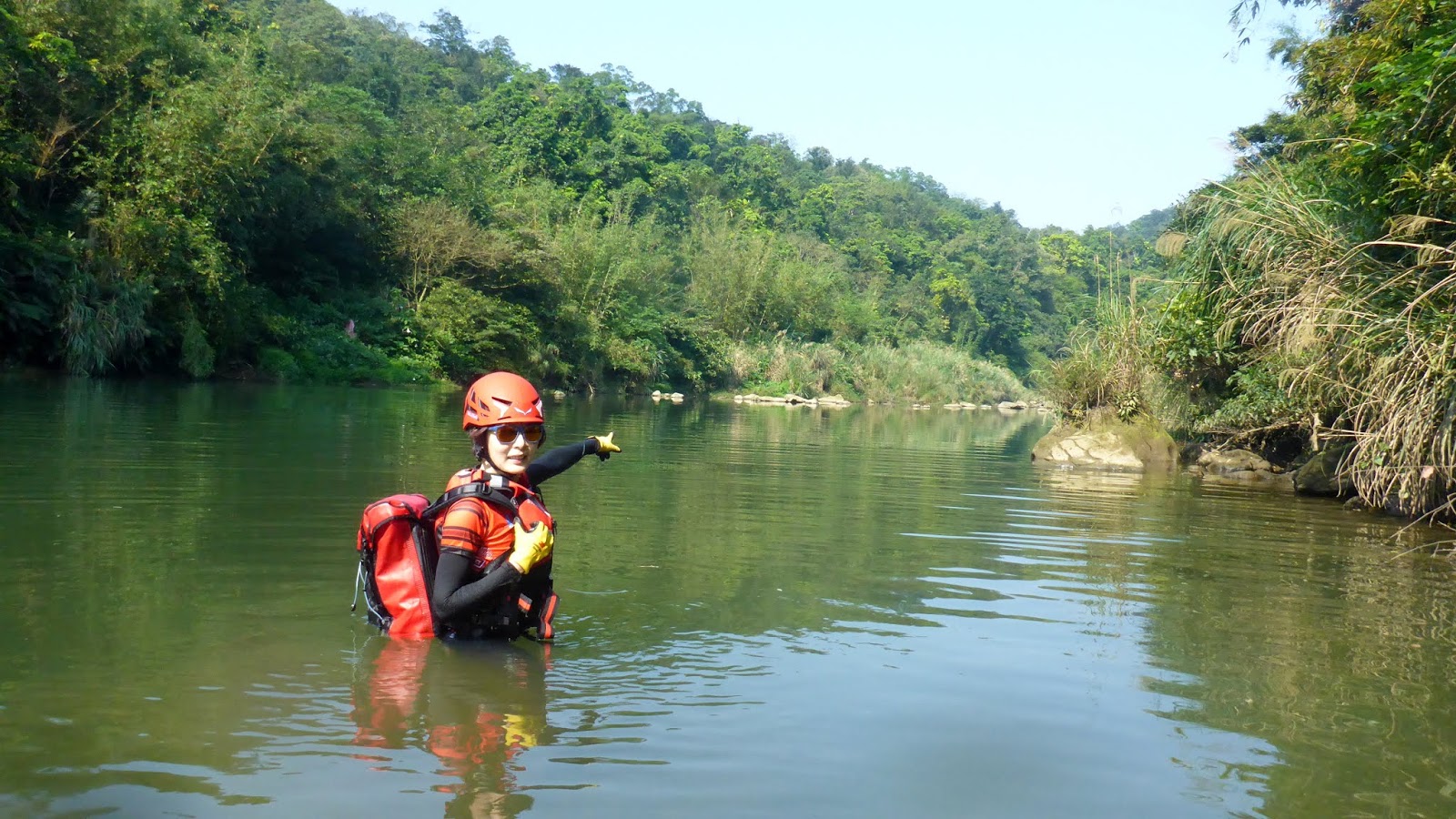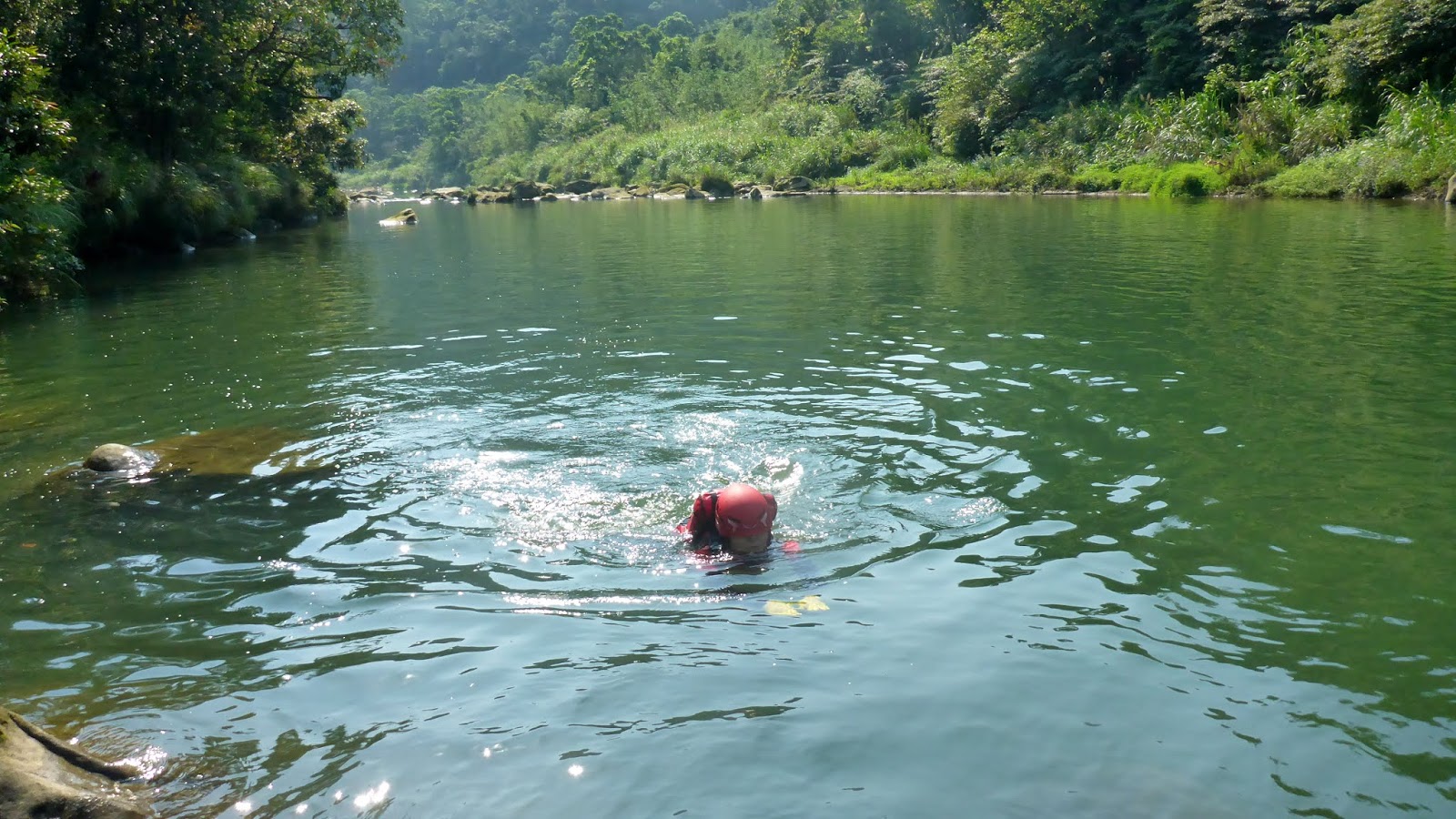為省時間,接下來能走河床就走河床,節省力氣,幾個長潭就沒辦法了,下水吧,雖然這段沒什麼起伏,但有樹木、壺穴、長潭等,這段河床景色其實還蠻不錯的。