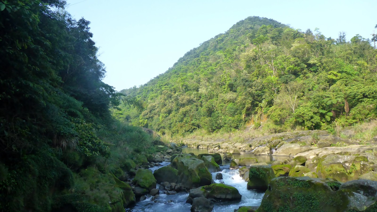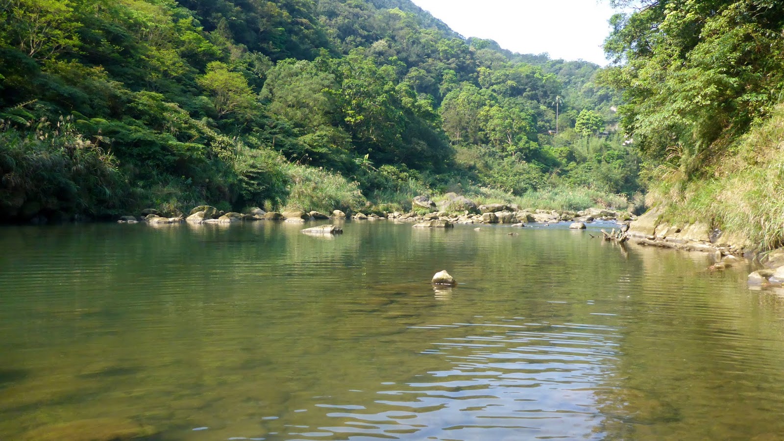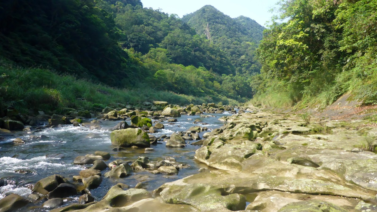 為省時間,接下來能走河床就走河床,節省力氣,幾個長潭就沒辦法了,下水吧,雖然這段沒什麼起伏,但有樹木、壺穴、長潭等,這段河床景色其實還蠻不錯的。