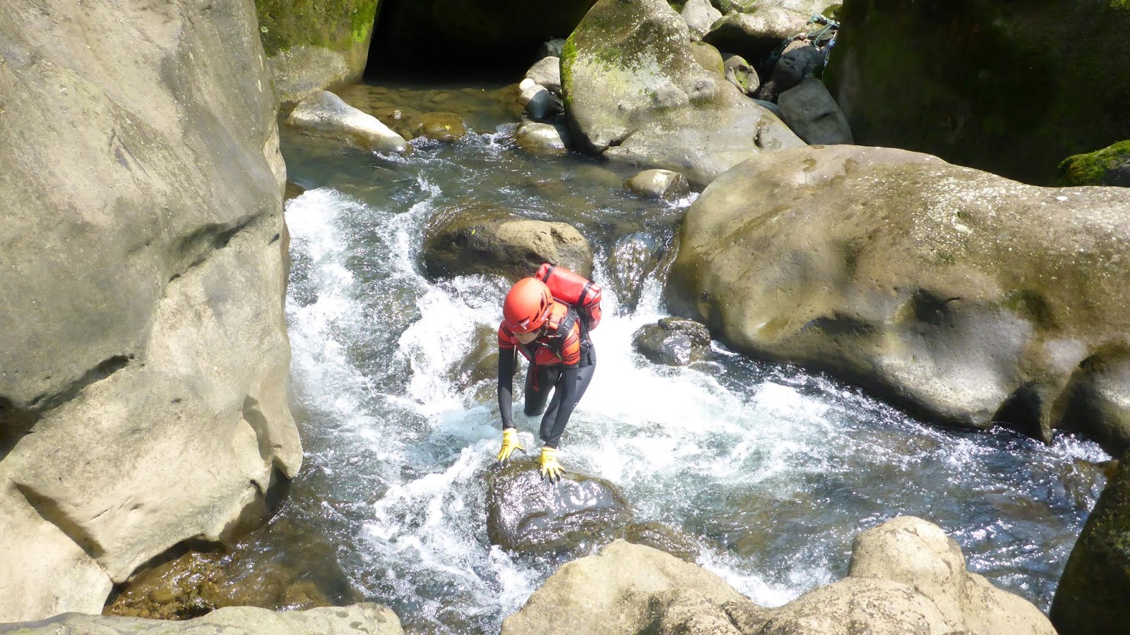 石頭超滑,遇一道長深潭,直接游還可能快一點
