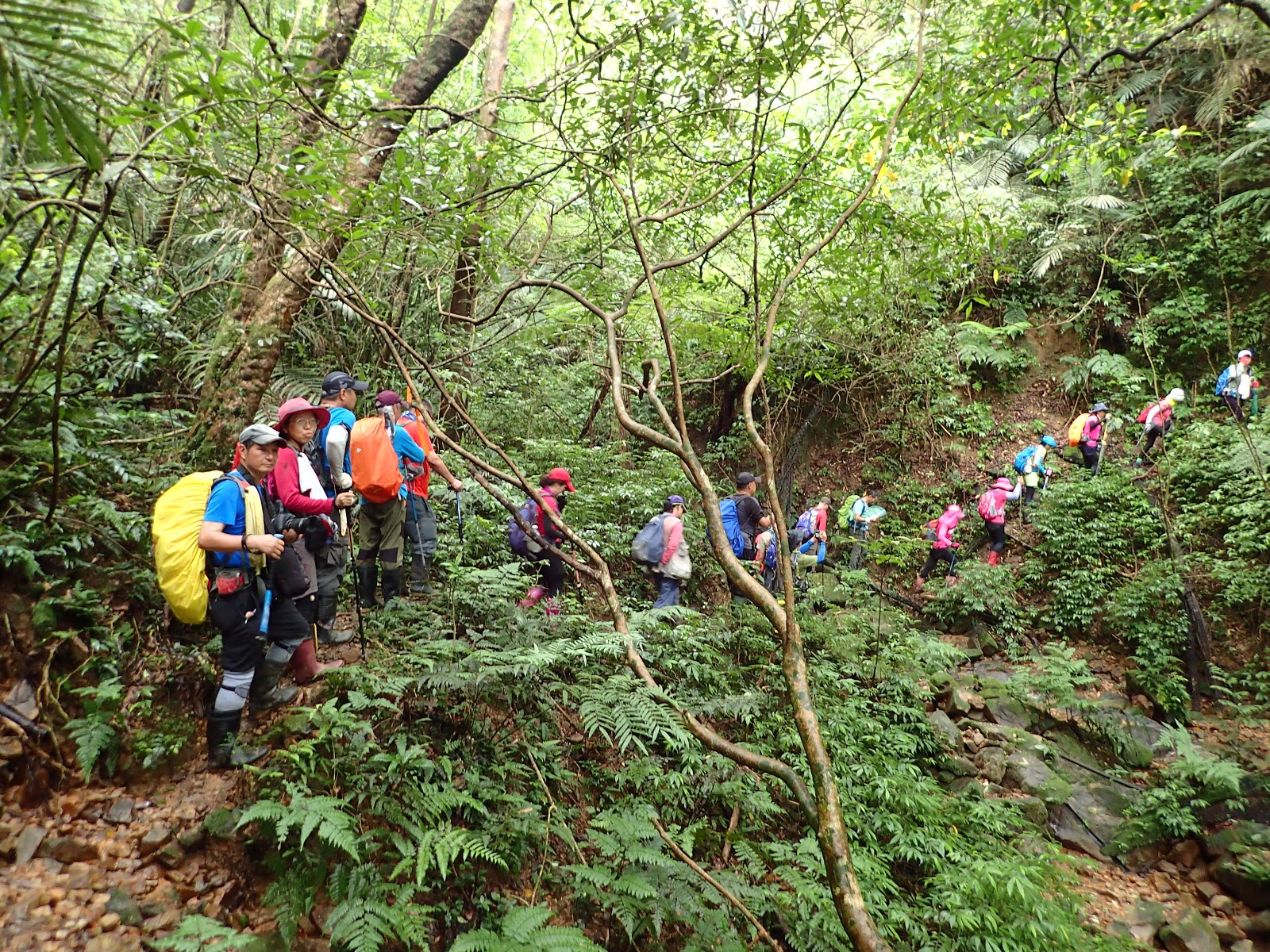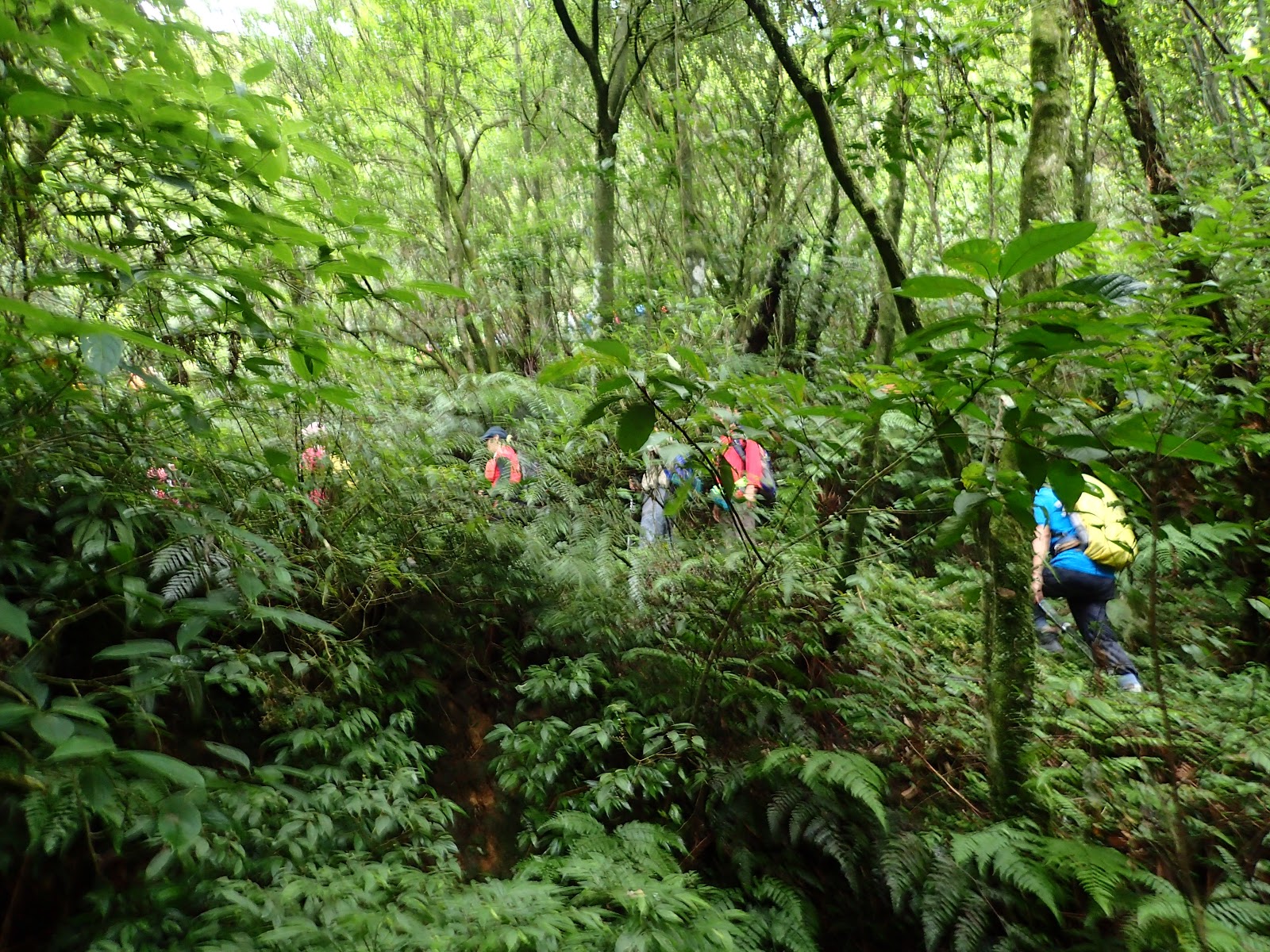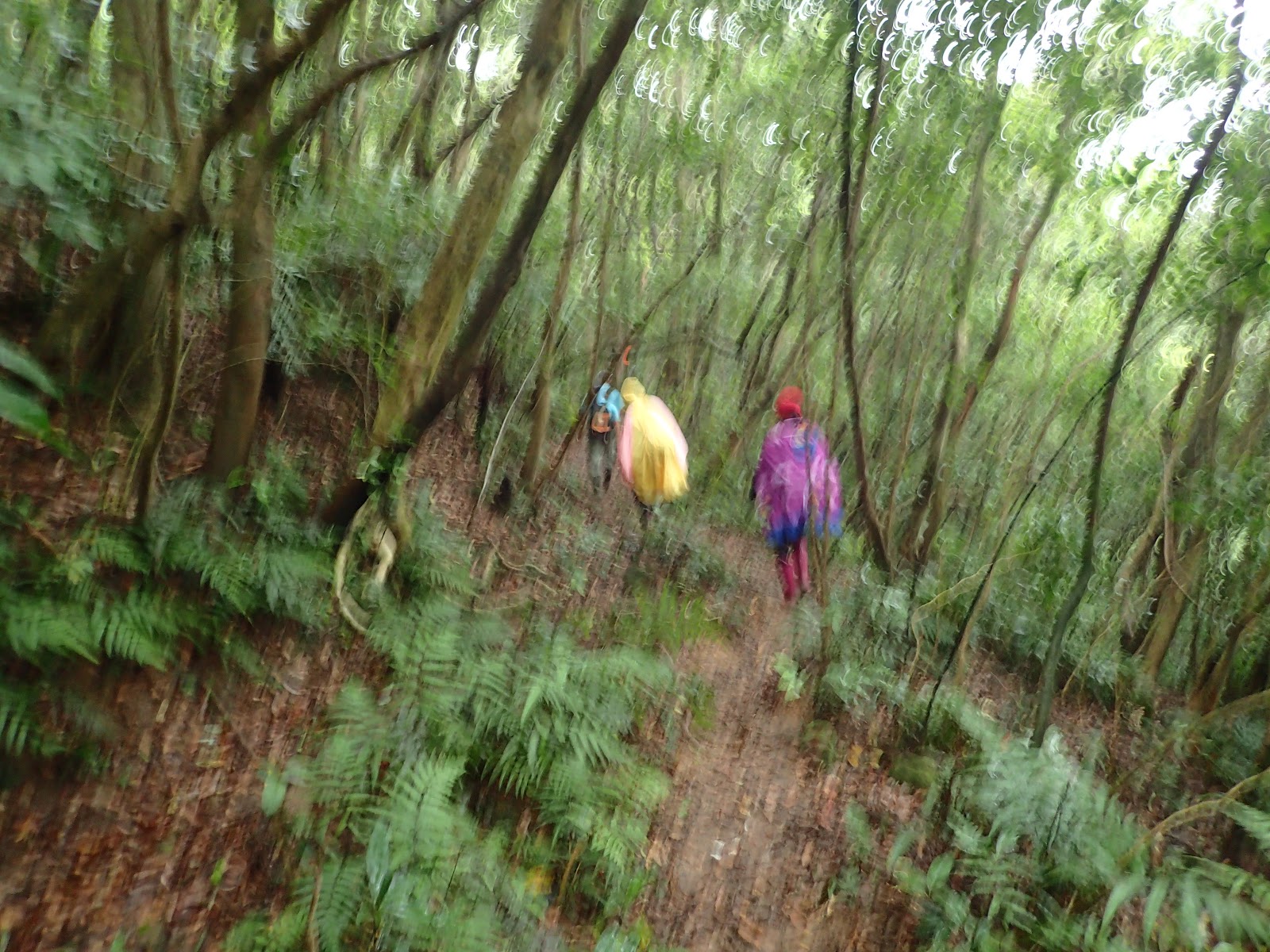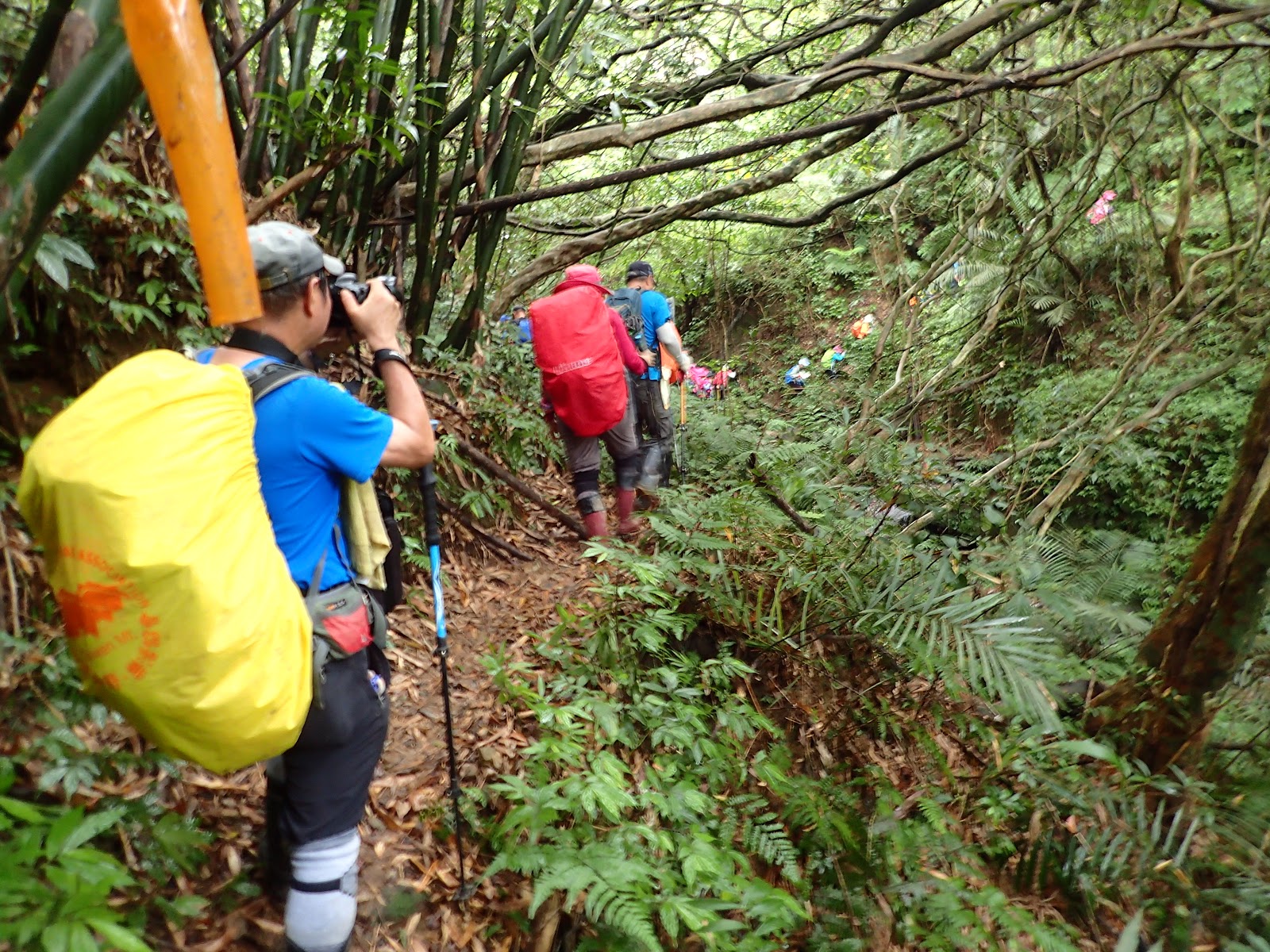 8:00雙溪高中集合後前往丁蘭山坑老農夫生態園區鄒家停車, 嚮導董肇大哥介紹行程: 丁蘭坑山, 破子寮山, 原路返回竿蓁坑古道, 回停車場, O型含大休約6-7小時, 中餐盧家民宅泡茶聊天吃便當