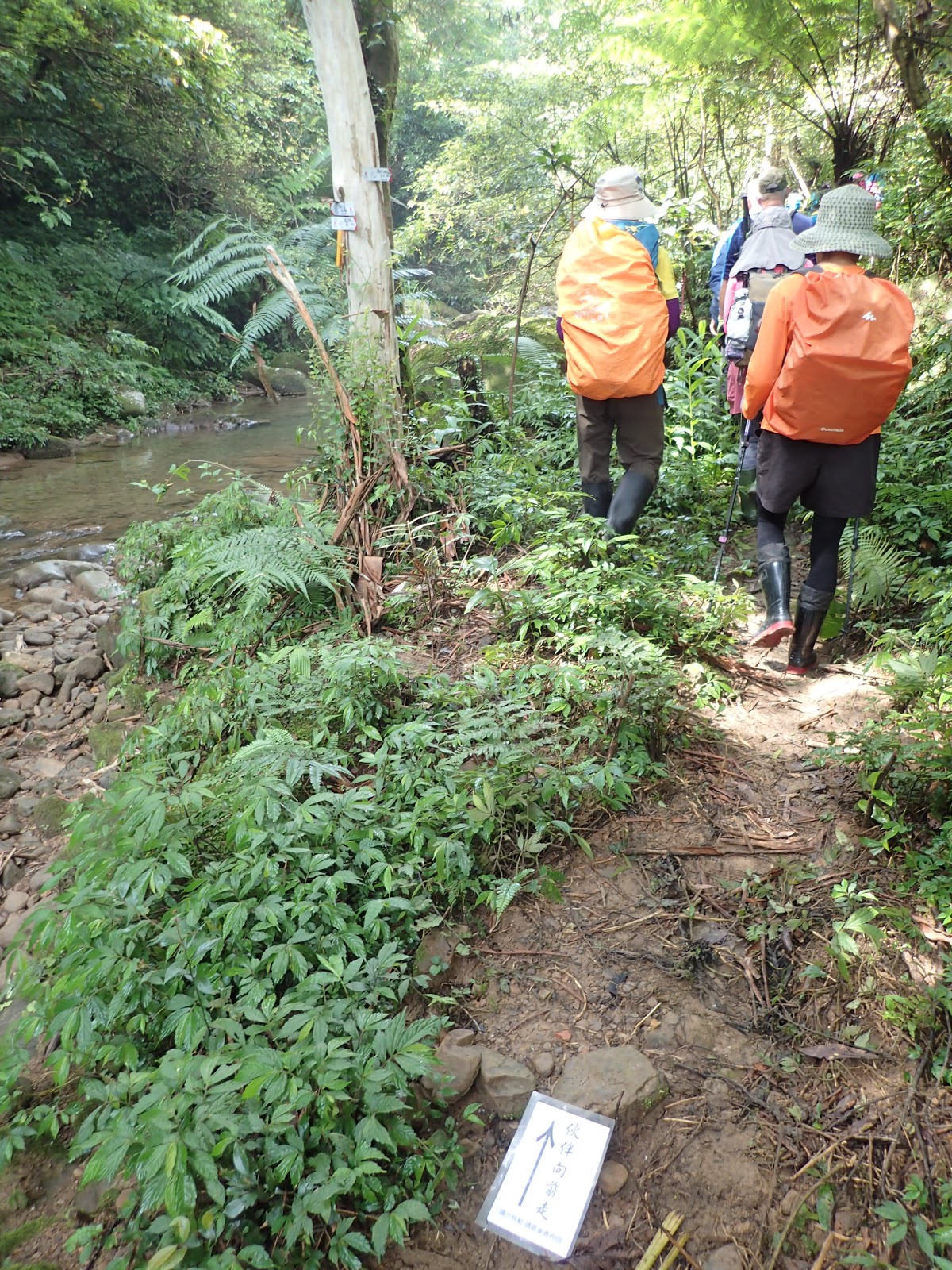 沿著溪邊小徑, 分岔路口放置箭頭指標