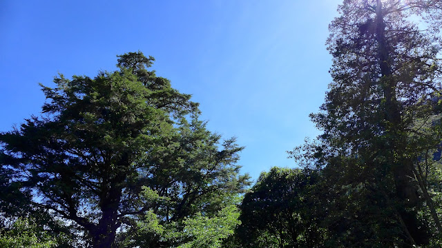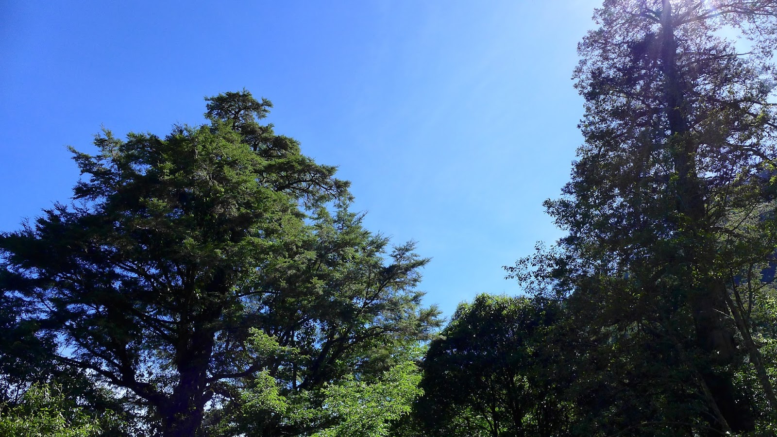 鐵杉林間觀賞深藍的天空