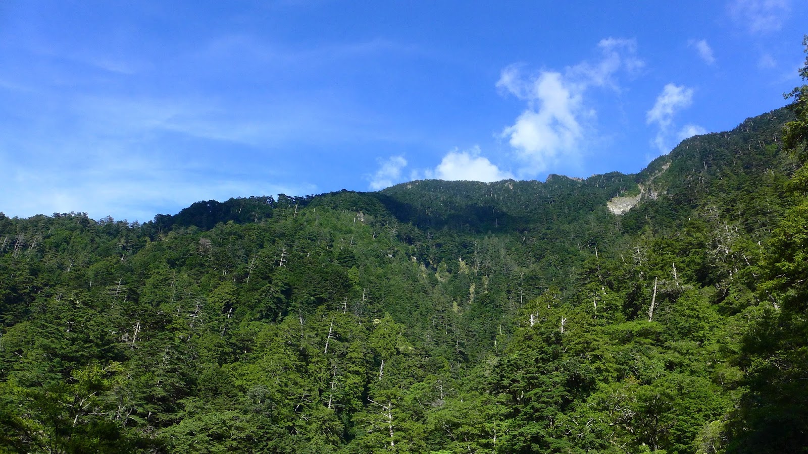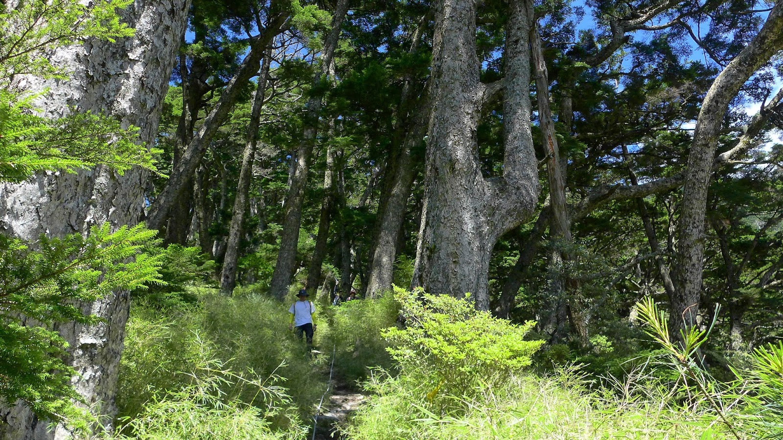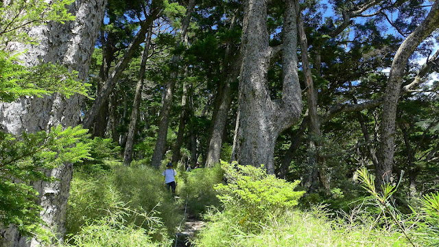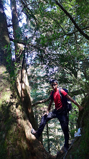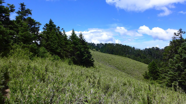 休息完繼續前進,有幾處森林缺口可以望望天空,後段進入巨大的鐵杉林內,持續不間斷的陡上等於在複習畢祿山一樣。