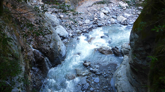 第一次過溪後,沿途繼續陡下,有幾處崖壁地型較不好走,另有一處的木梯已經有點不太穩,通過時需多加留意腳步。