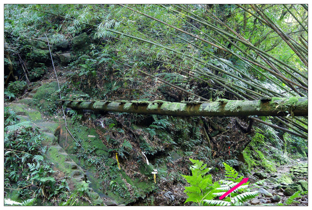 13:21 十六分山三角點 13:25 原路下山 13:50 回到涼亭 13:55 往銀河洞 14:13 叉路取右沿溪谷步道走