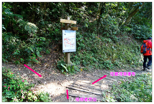 往右下可接回銀河洞,往左是貓覽車站,直走往二格山及十六分山