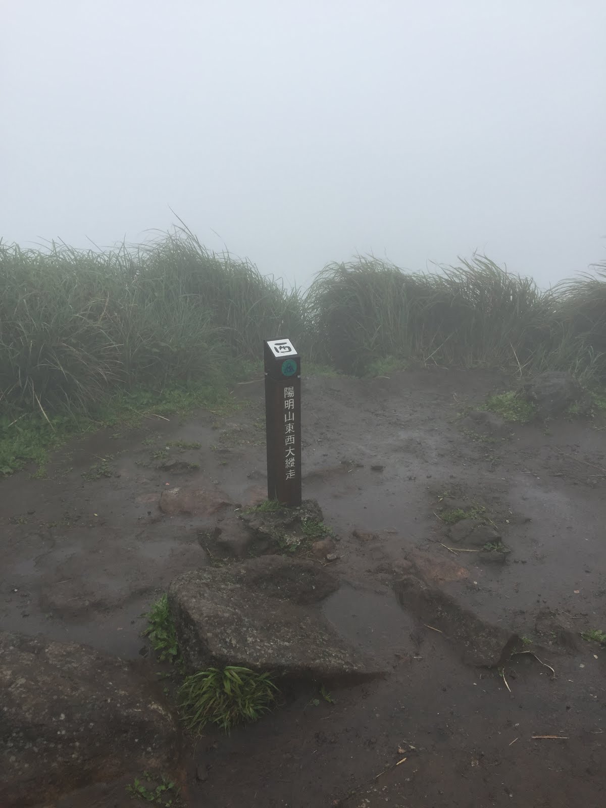 ↓ 西 - 七星山主峰,小百岳 No002,台北市第一高峰,高1120公尺。風雨更大,但還是有登山客不畏風雨上山。