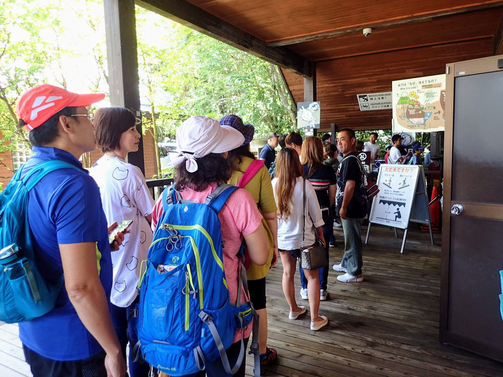 來到鳴沢氷穴, 大人小孩遊客特別的多, 都不曉得從哪冒出來的