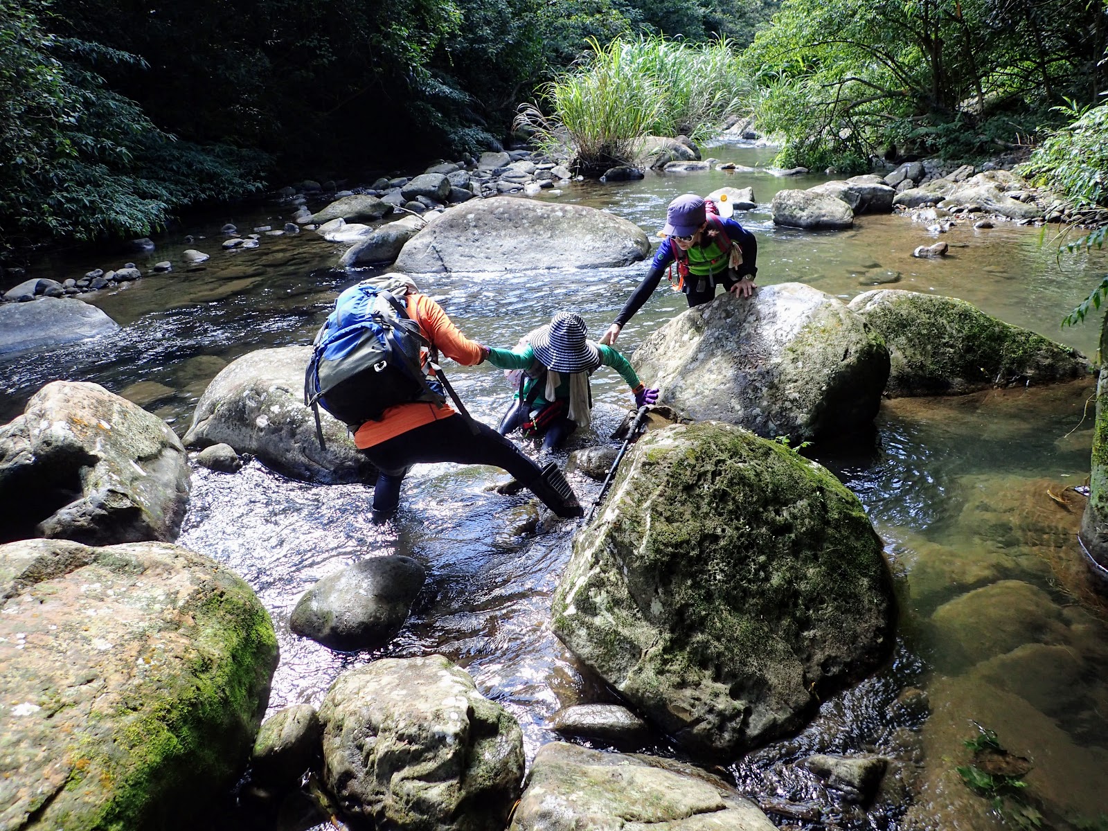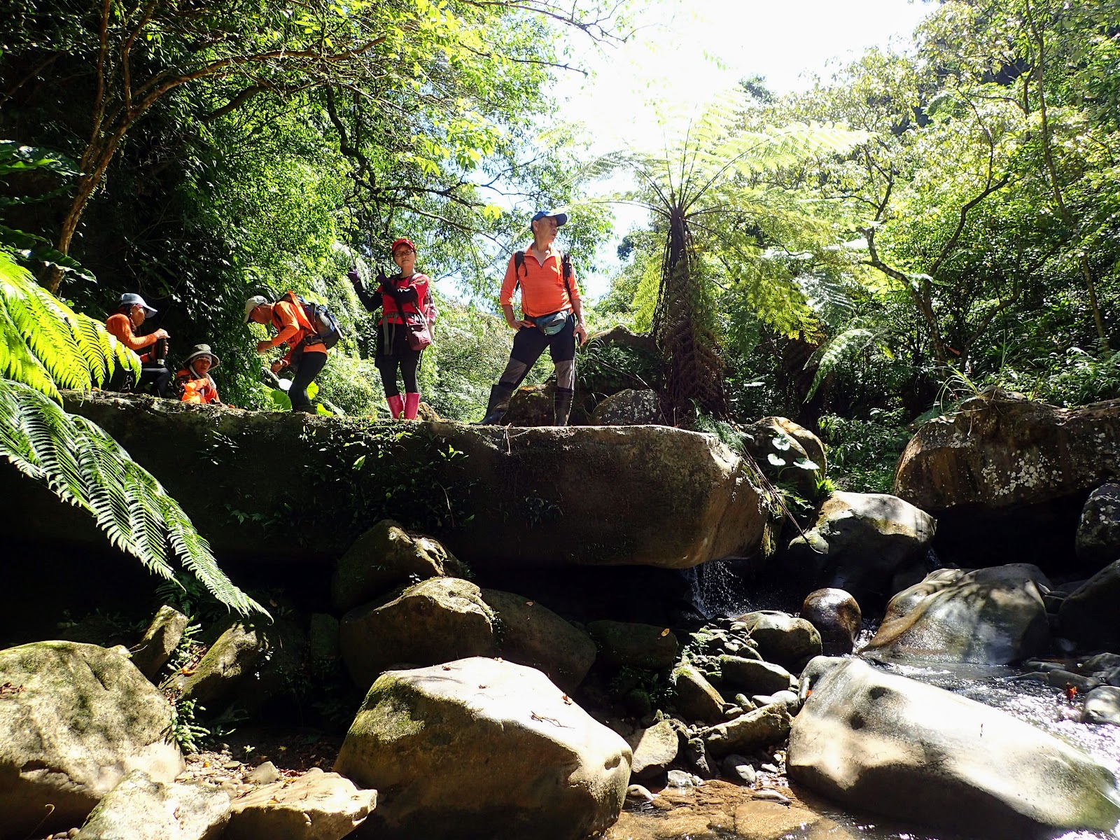 雪山之前要好好練體力, 不料連日大雨加上氣象預報說有雙颱共舞都出不了門, 趁著好天走了一趟南山秘境卻只有眼睛補到, 約琴妹走平溪七瀑巡禮, 查預報又說有雷陣雨, 最終還是窩在家, 不久FB出現新聞說颱風琵琶最快周二生成, 中秋會有變數, 哇, 死定了! 趕緊約淑芬及琴妹報名週二的暖東峽谷古道縱走, 印象中小李哥有說, 路線好走又涼爽, 再不行不用爬山了, 衝著這句話來去...