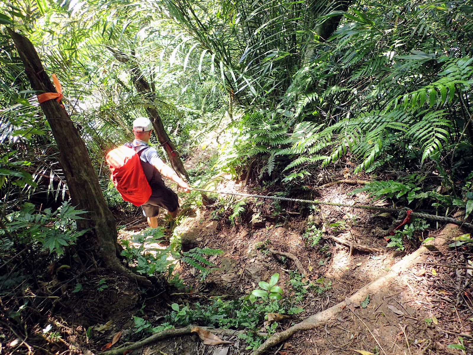 稍微斜坡的地方有拉繩輔助, 小心走安全上都是無疑的