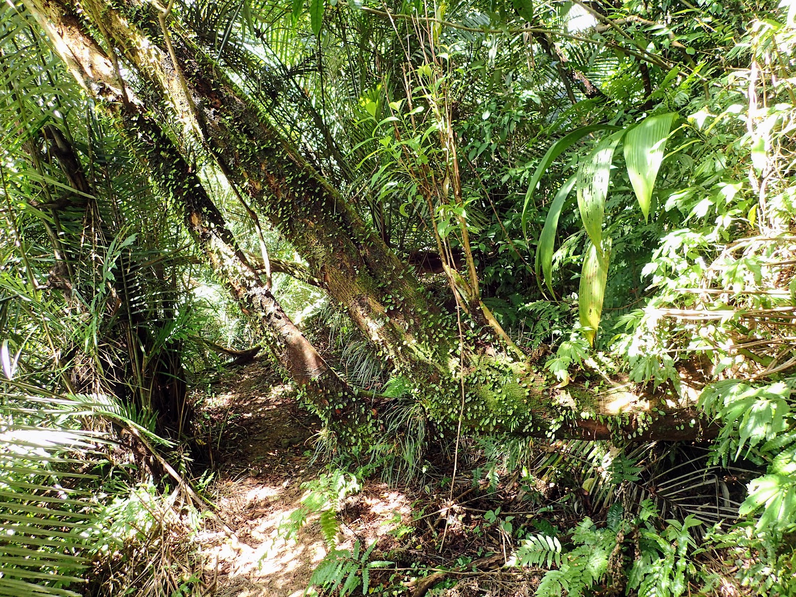 繼續走, 琴妹實在很愛玩, 看到倒樹就爬