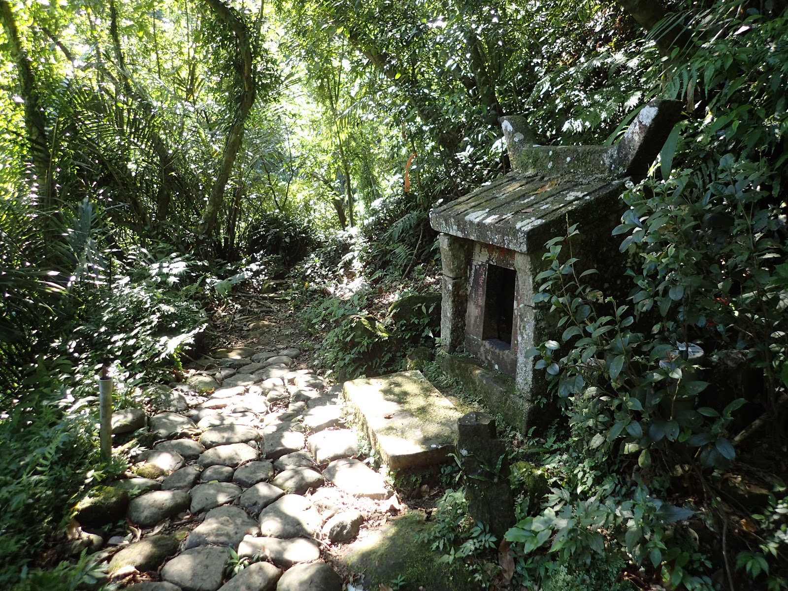 9:40 經過好像很利害的土地公祠, 上面掛著五顏六色的登山布條