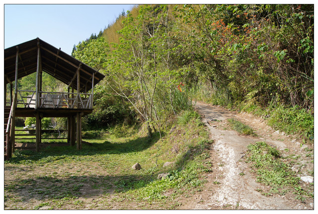 →取左叉路往『鳥嘴山露營區』方向→經巴棍、莫那農場續右前行→08:42『八角涼亭』