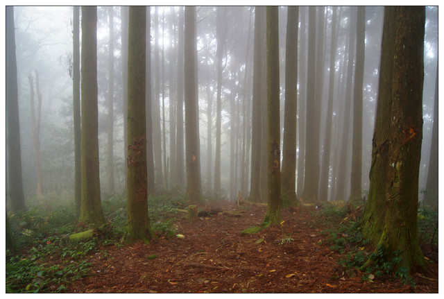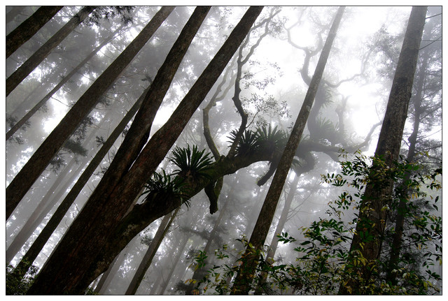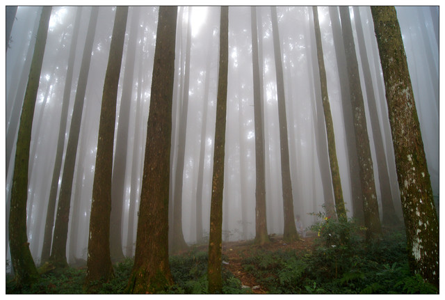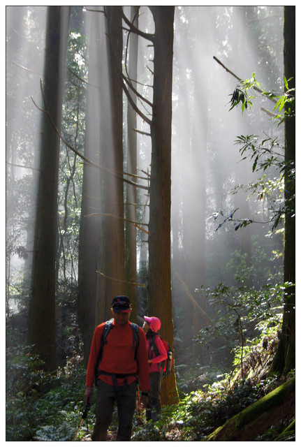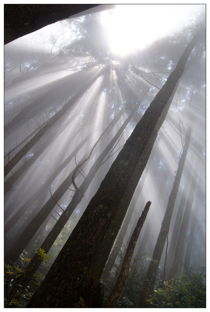 此片森林雲霧瀰漫,陽光照射穿透數千林間,瞬間光芒萬丈,恍如置身神仙國度