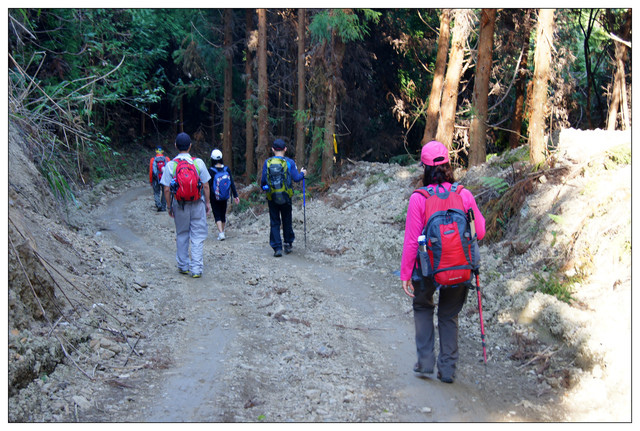 從八角涼亭到鳥嘴山登山口要踢一小段水泥路「登山口位在鳥嘴山露營區內」
