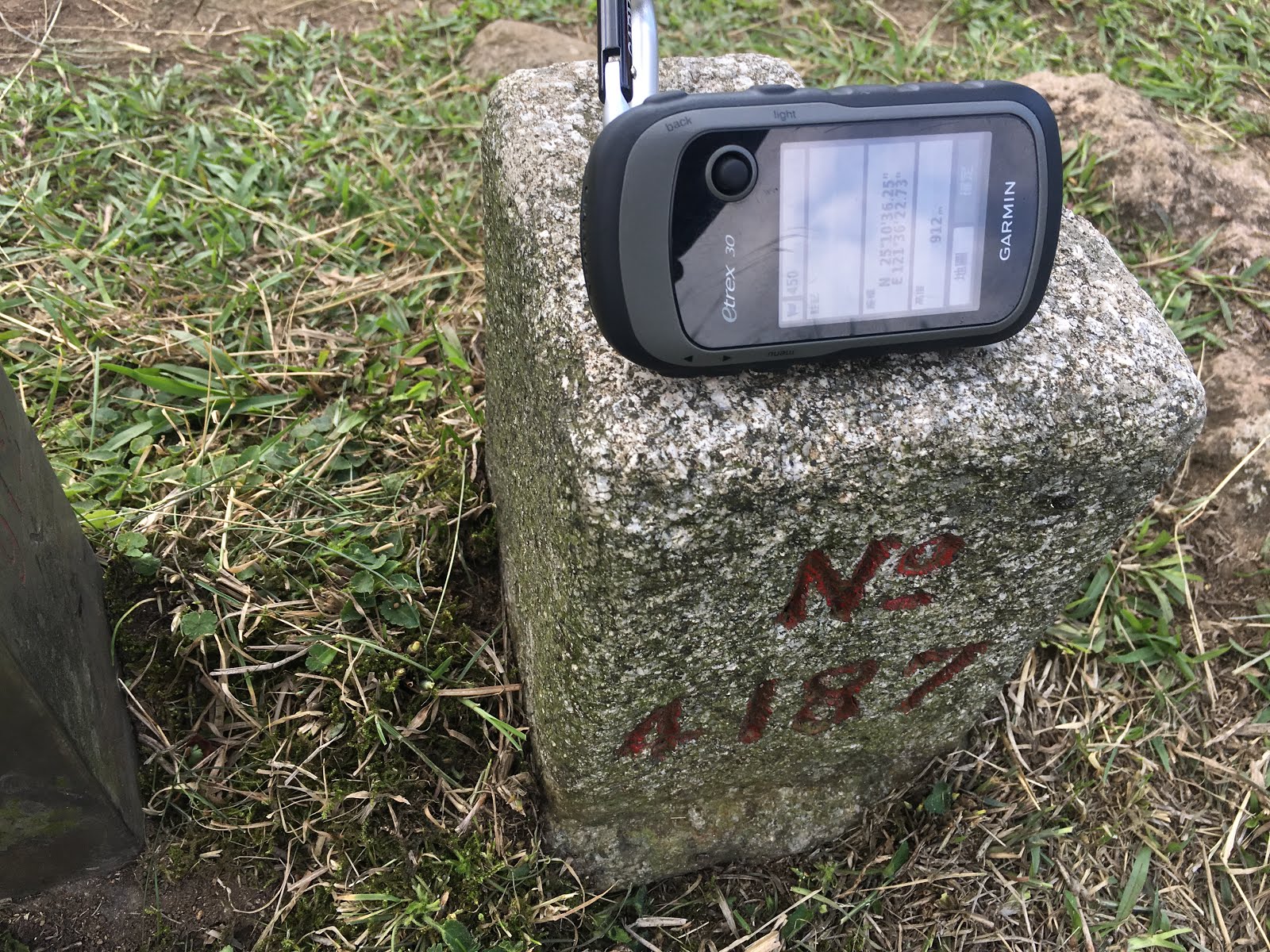 ↓冷擎步道 行經 小水準點 235~擎天崗上原汁原味的古蹟, 下圖為2018三月資料照片。