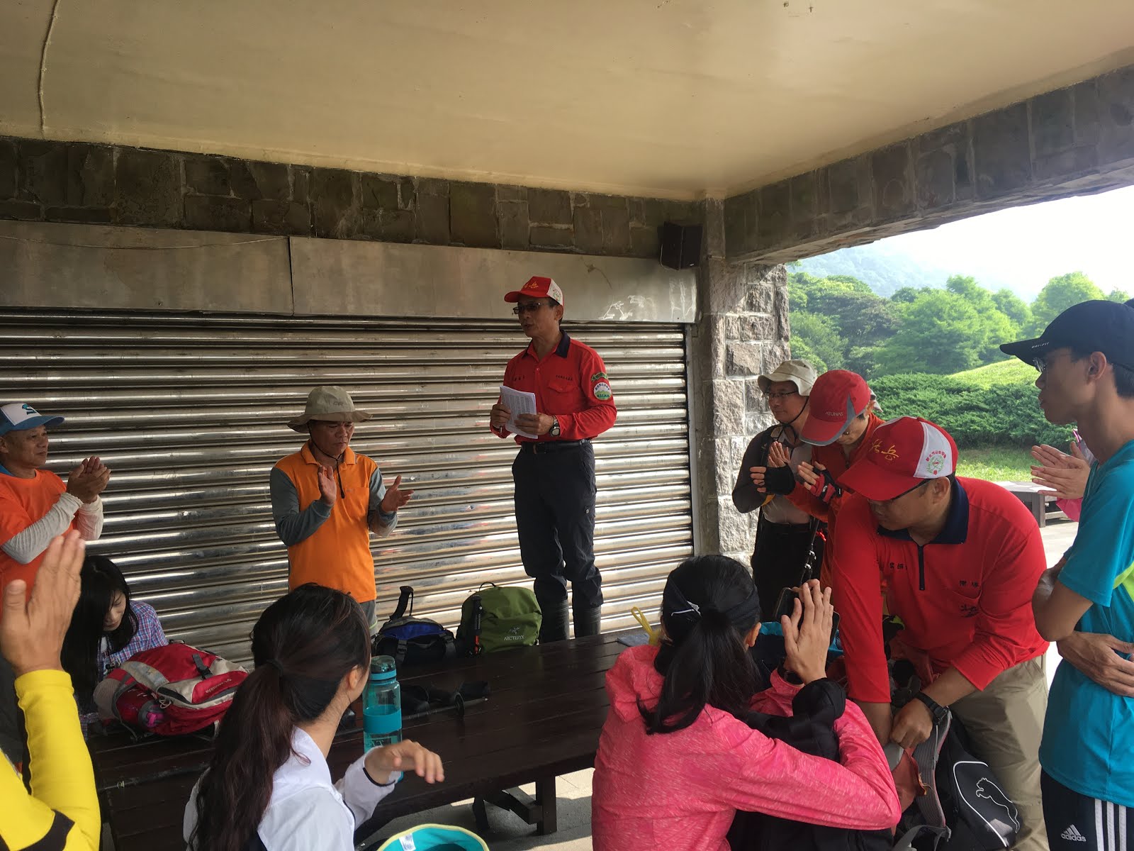 ↓早上八點整,冷水坑遊客服務站秘境停車位就已經一位難求。剛好趕上熱心北岳 嚮導群 為我們做行前解說及行前暖身。
