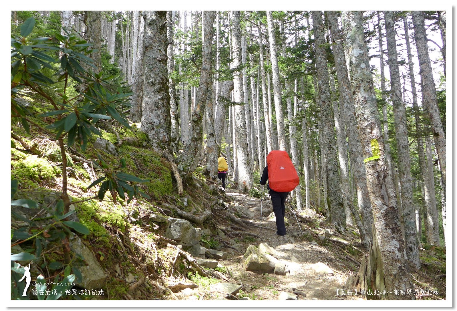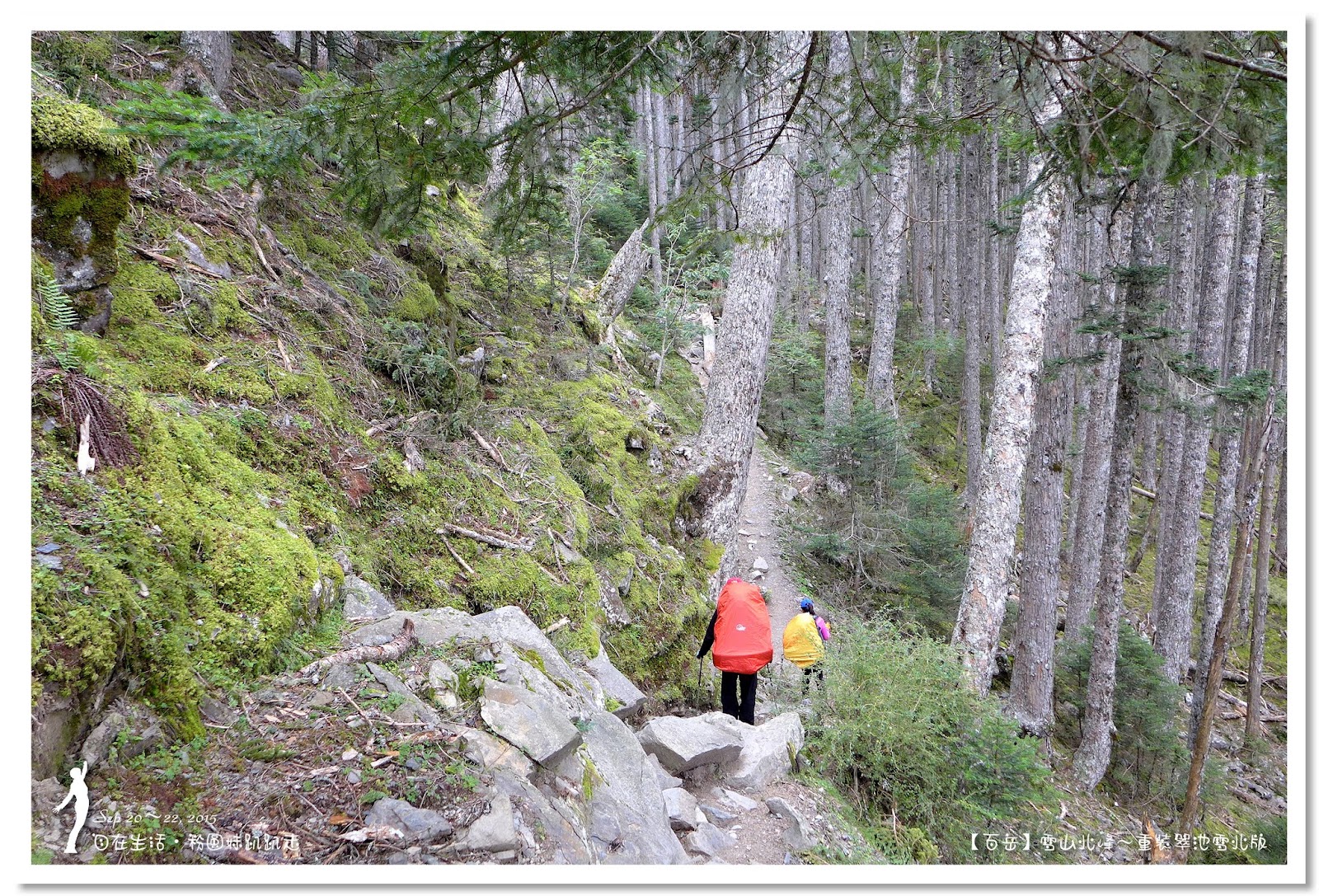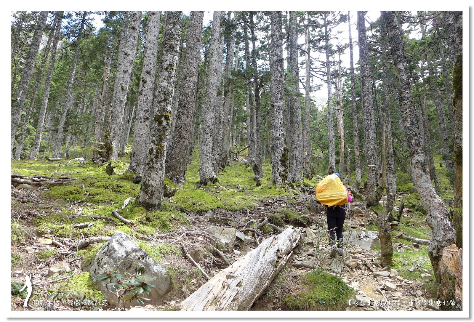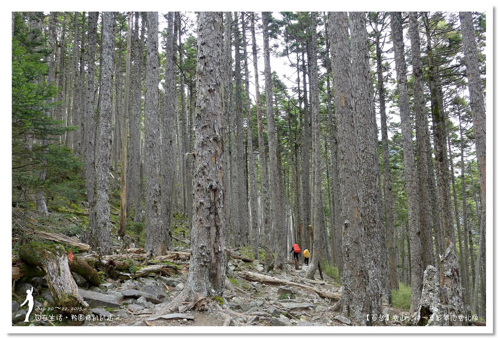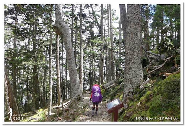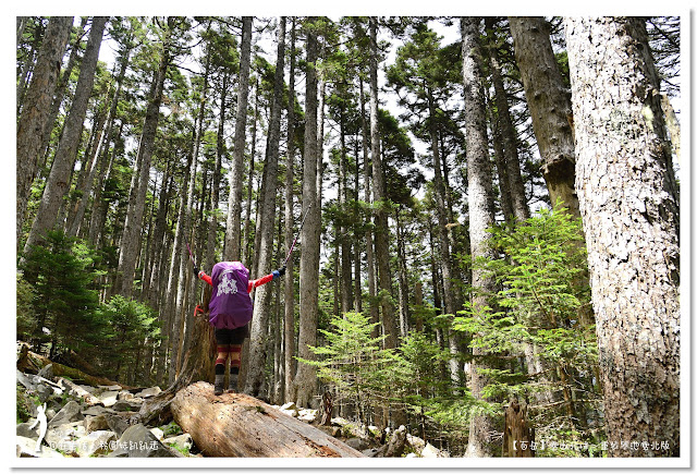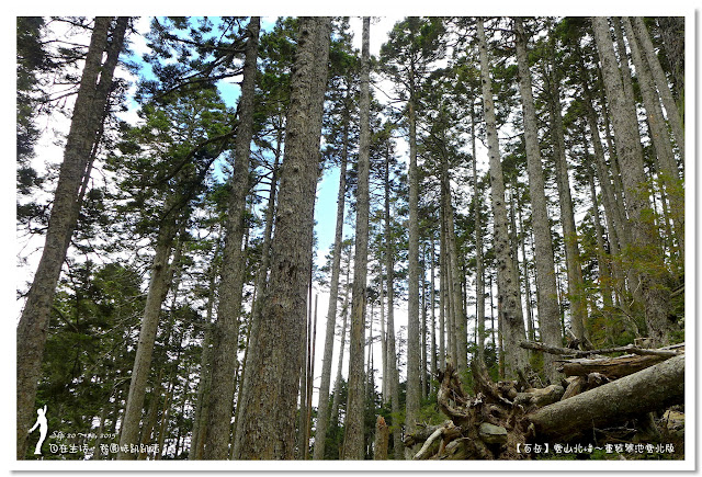 好好休息1小時後啟程,進入台灣最美麗的「雪山黑森林」,這是全台海拔最高的冷杉純林,會有黑森林之稱,即表示林相茂密,光線不容易投射進來。走雪東主線的行程,每次經過黑森林不是早上天黑黑,就是回程起雲霧,光線不佳的情況下,很難拍得出黑森林美麗的樣貌。這次因為從登山口直接要上翠池,所以經過黑森林時,正是陽光最強的中午時分,讓我們可以看清楚黑森林的美麗。
