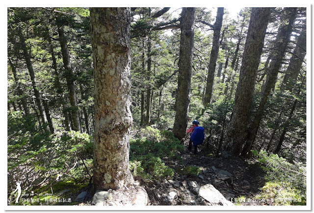 從雪北線約1.9K處下切水源岔路進入黑森林至369,這條路是陡下碎石坡,比翠池碎石坡還要刺激,但是比走到主峰再下黑森林至369,可以縮短2小時的路程,這段路我沒走過,這次是嘗鮮。