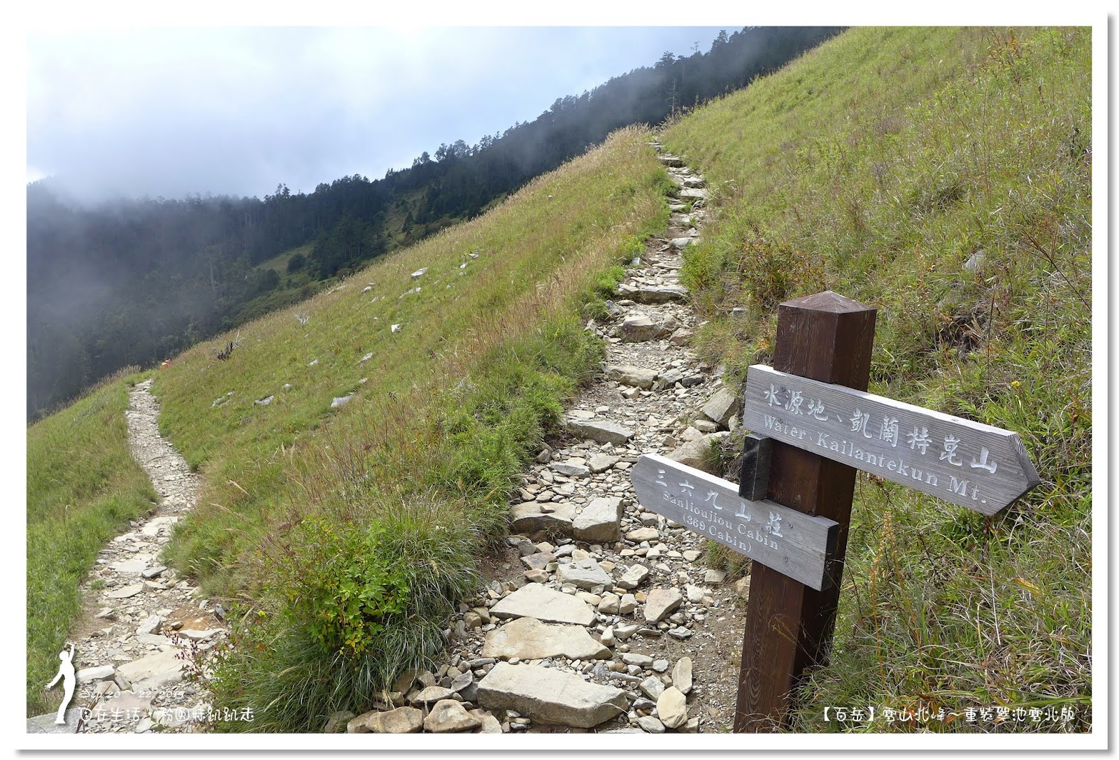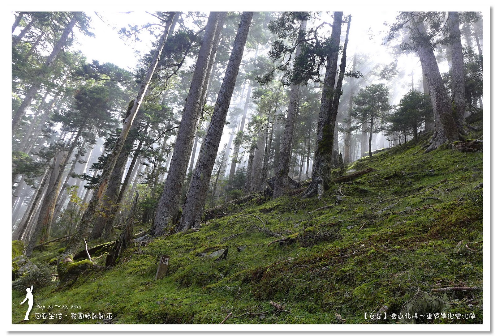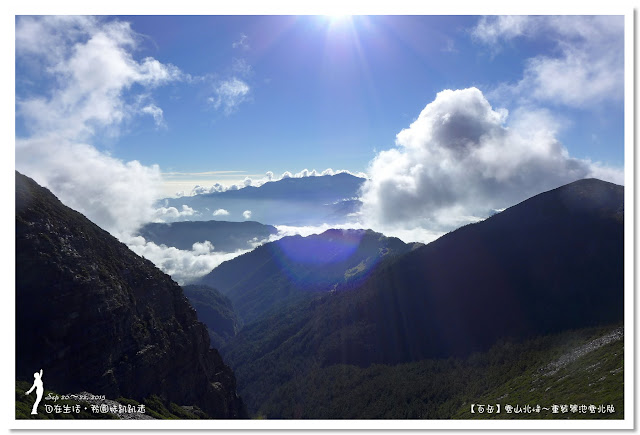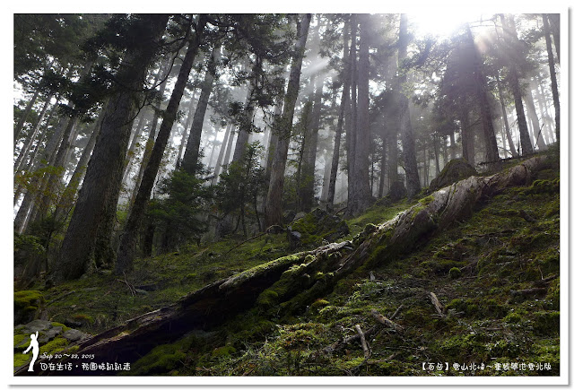山嵐飄來又飄走,聖稜線時而輕紗籠罩,時而金光閃耀,猶如少女一般的多變,有了美景可以拍攝,也忘記了負重,上坡直接是用衝的,山中光線變化快速,美景瞬間即會消逝,所以要好好把握,就這樣走走拍拍,走到水源岔路也足足走了2小時,但是有美景相伴一點也不累。