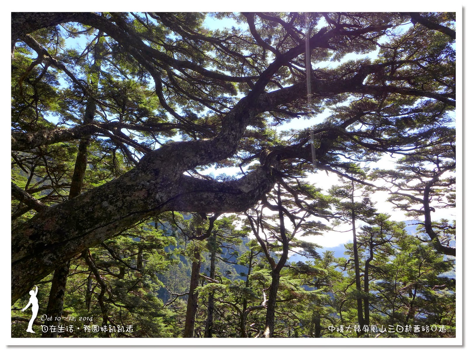 將滿身的泥巴擦擦弄弄,換上乾淨的備用衣褲,準備早點休息,睡意正來時,就不斷作往下掉的夢,一直被嚇醒,舊路的確比較驚險,雖然我沒有驚嚇到,但也許壓力都潛藏在心裡,所以才會一直作跌倒的夢。白天缺水,晚餐拼命補水,夜晚一直出來解放,這一夜睡眠斷斷續續的,不如前一夜好眠,也趁機出來仰望樹稍空隙中的天空,隱約看到閃耀的星星,說也奇怪,黑嘛嘛的營地,靜悄悄的沒有聲音,卻讓我得到安定的力量,這時真的有種「好逍遙」的fu哦~哈~