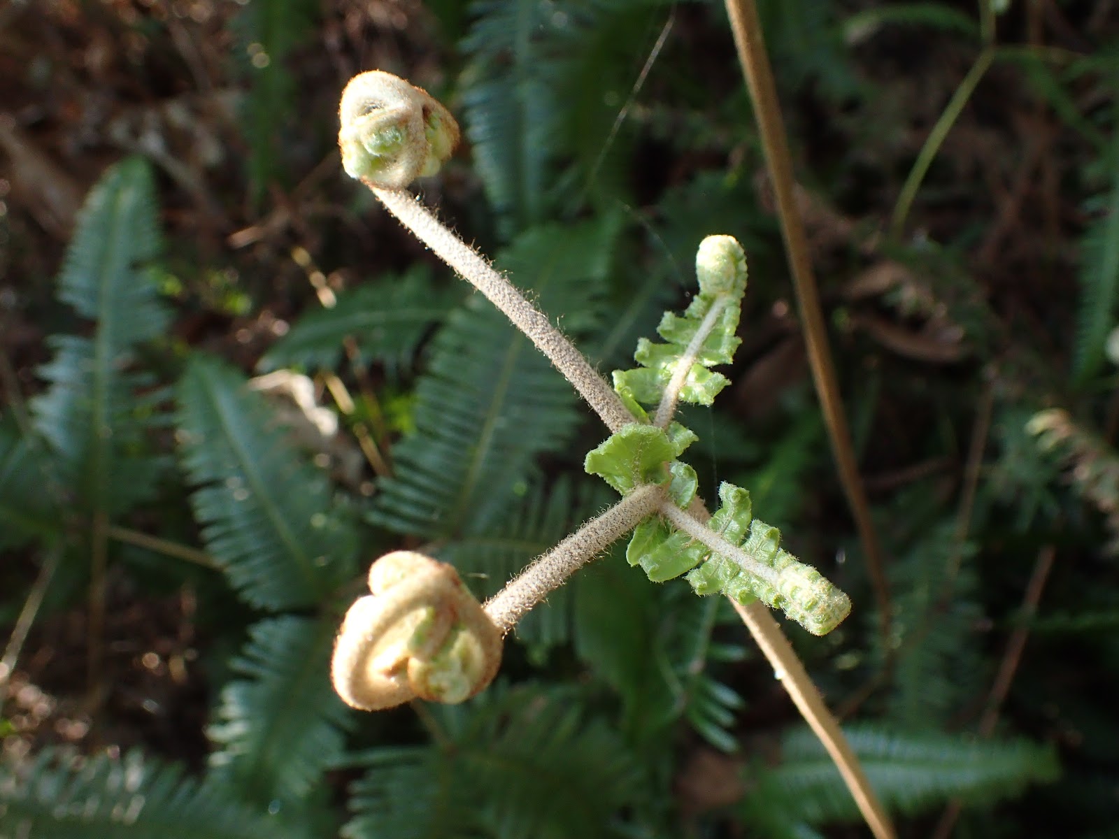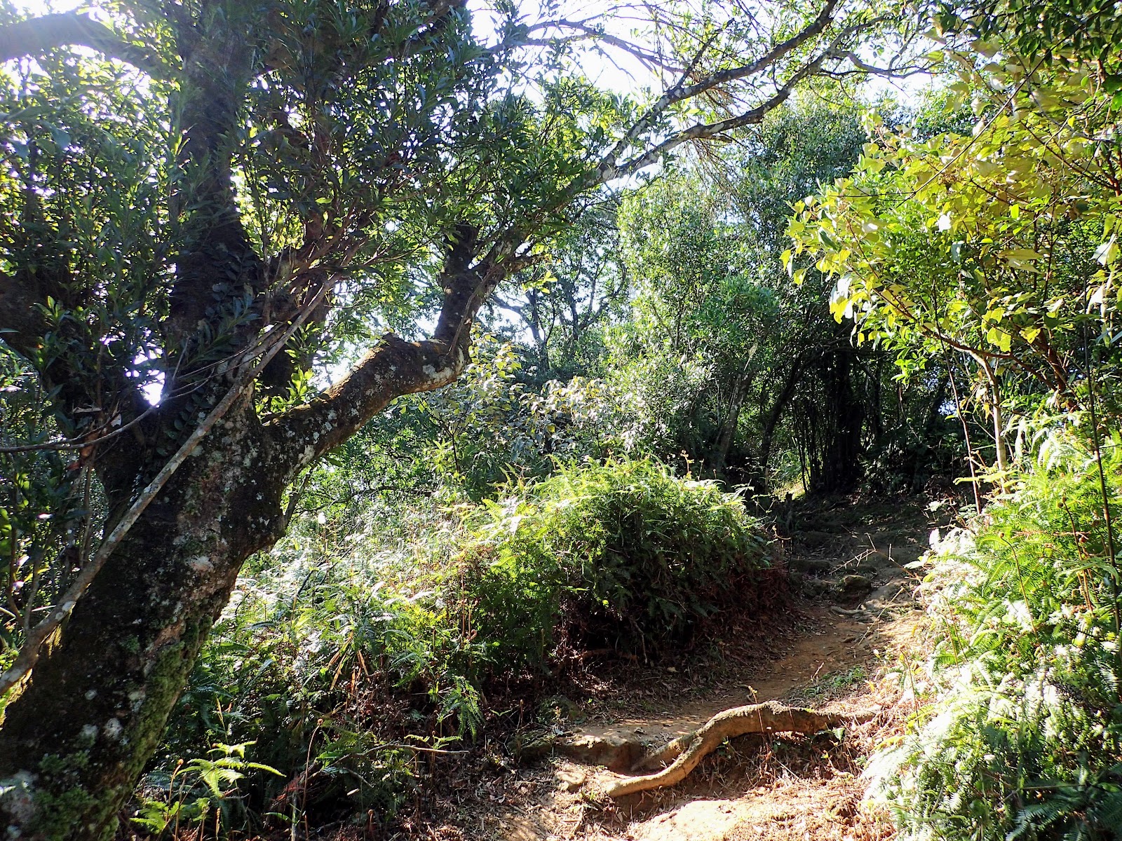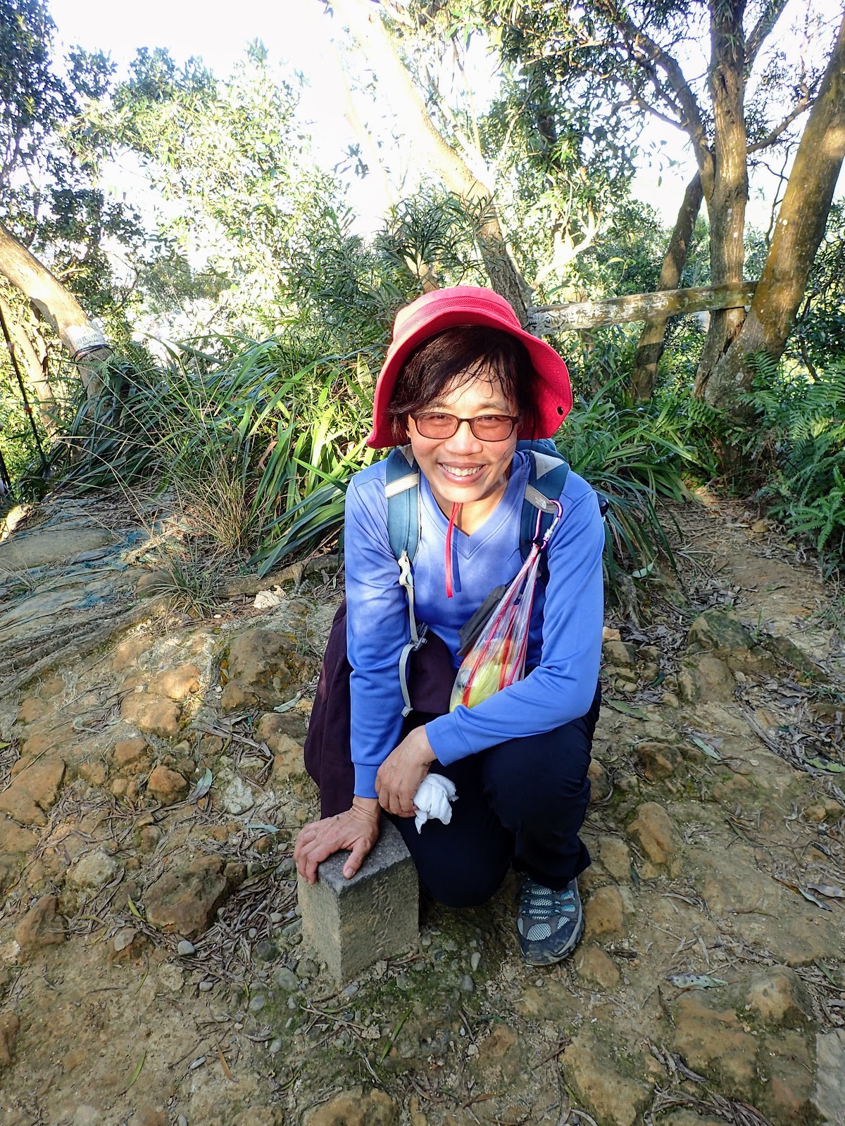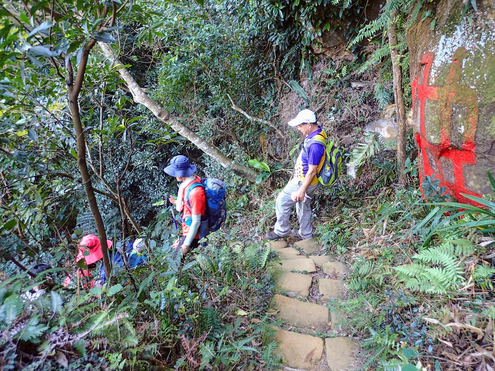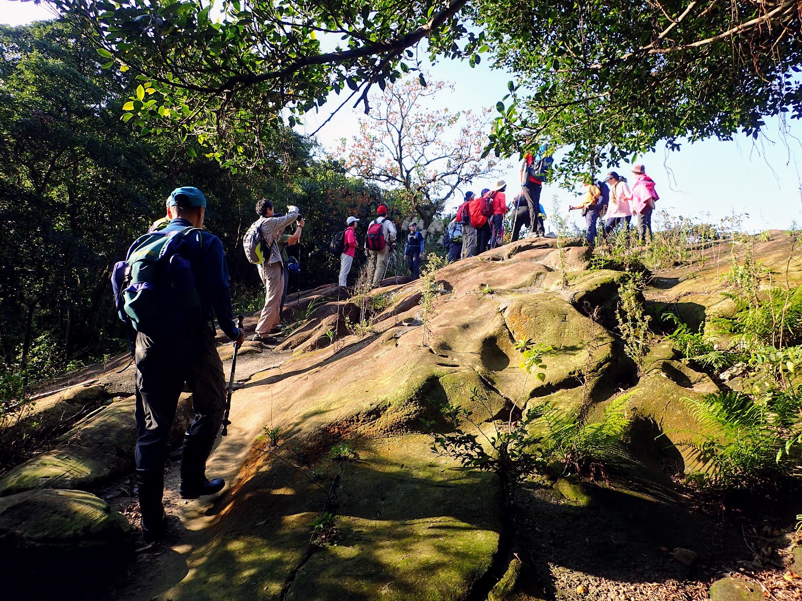 12:25 吃飽上路往拇指山, 岩石路狹隘陡滑, 錯身要小心, 有拉繩