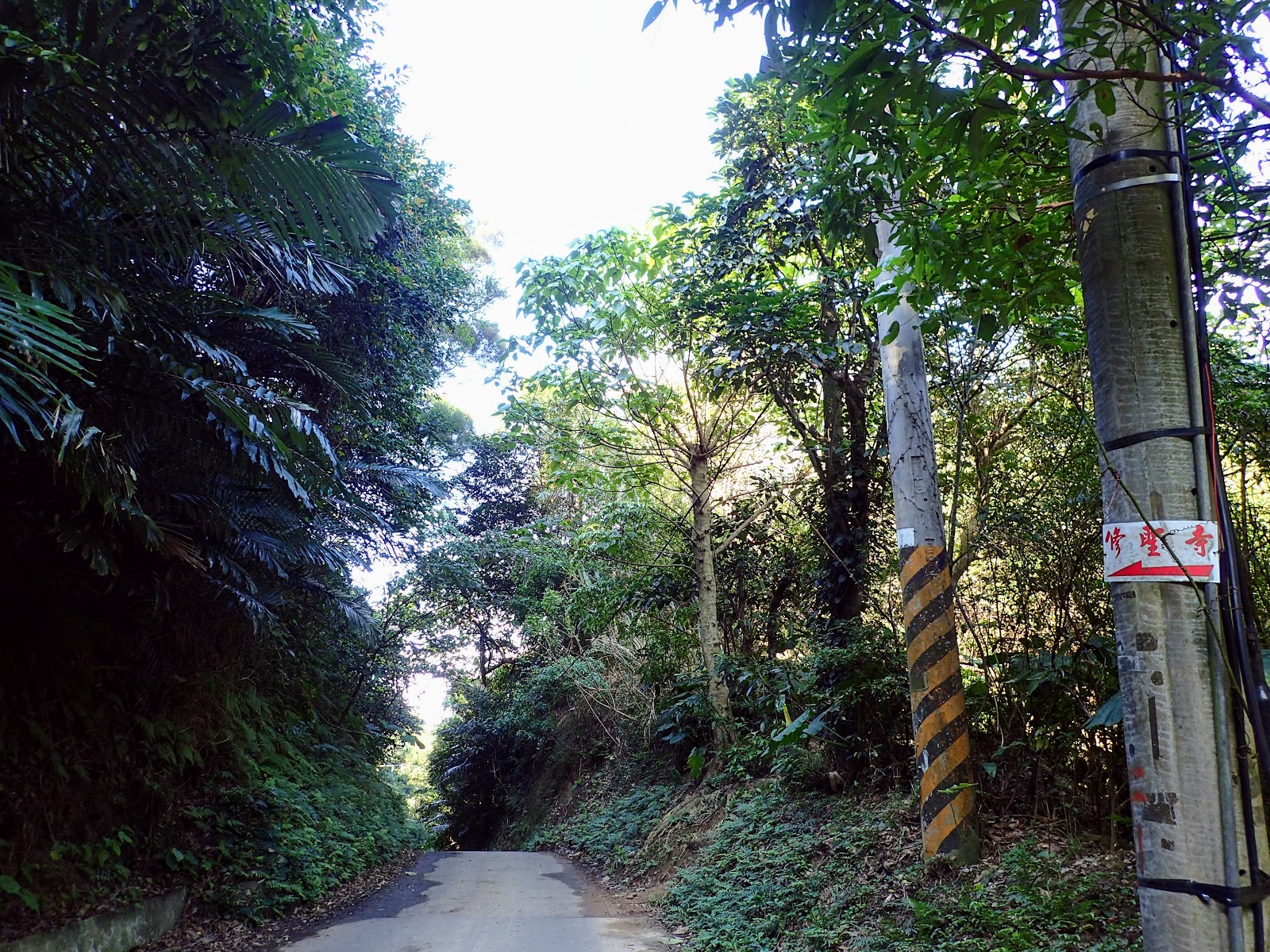 繼續走, 會看到兩根電線桿, 上有修聖寺橘色指標, 往前走幾步