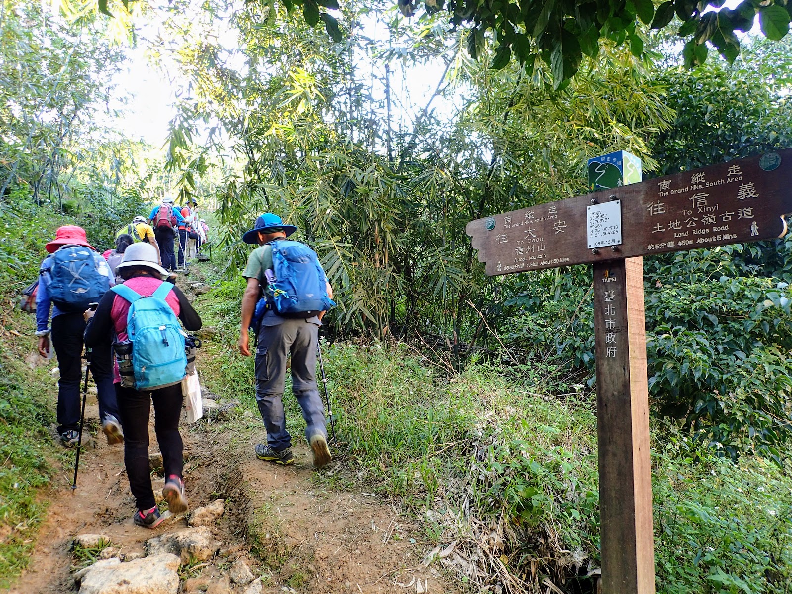 從糶米古道出發, 走過新坡嶺-土地公嶺古道-軍功山-中埔山東峰-中埔山, 獨缺了顆福州山, 4:10 富陽自然生態公園下山, 要不是杜老爺夫人有事需先走, 還差點完成台北大縱走其中的南縱走一段路線
