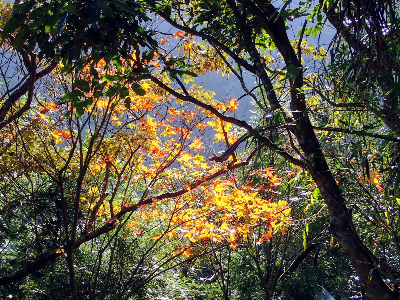 路旁還有閃閃發亮的黃金楓