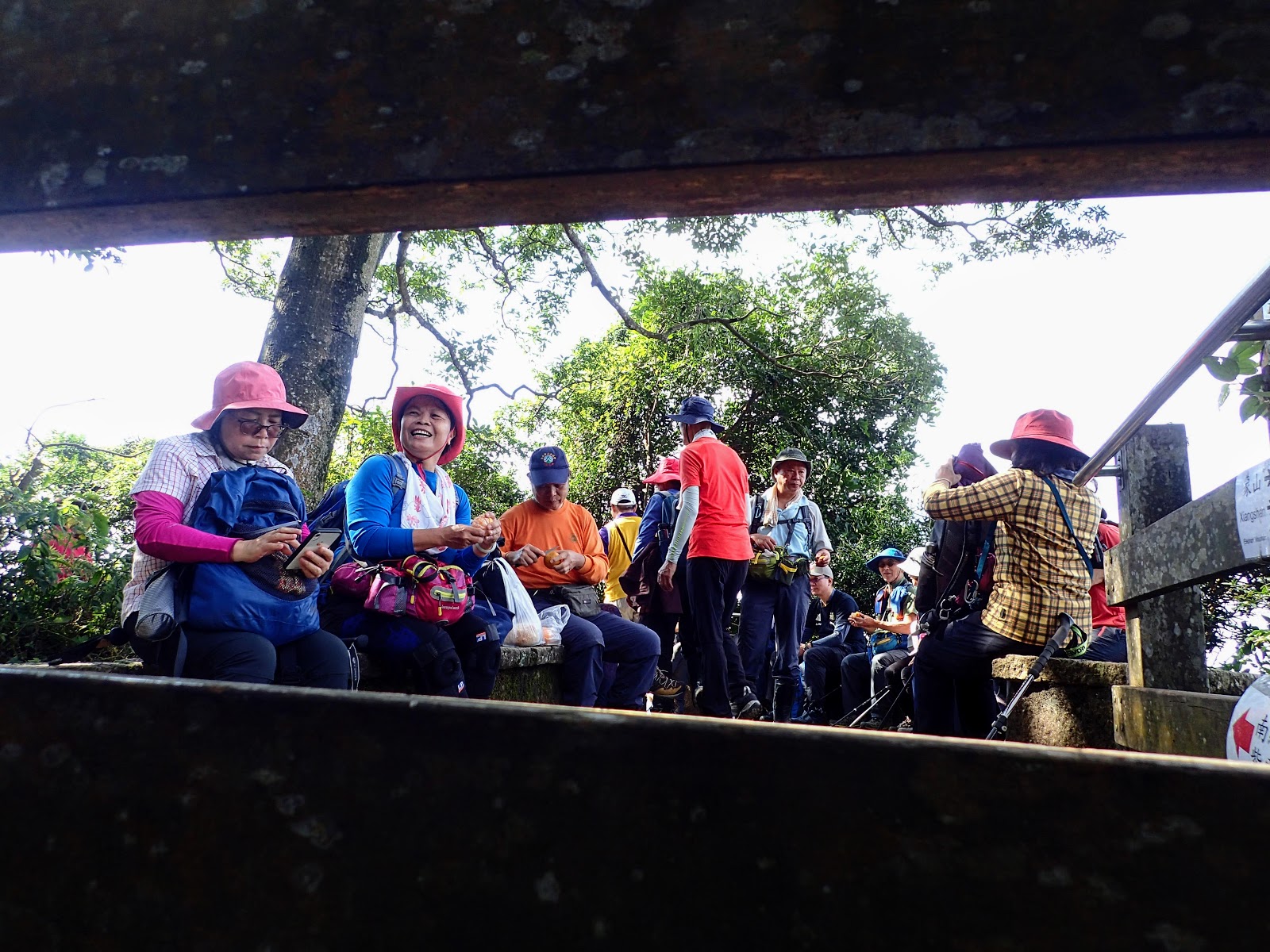 11:50 上到平台休息用餐, 吃著肉粽還有大家分享的零食水果, 耳邊傳來杜隊長, 杜夫人悠揚的歌聲, 哈哈, 真是高檔的享受啦