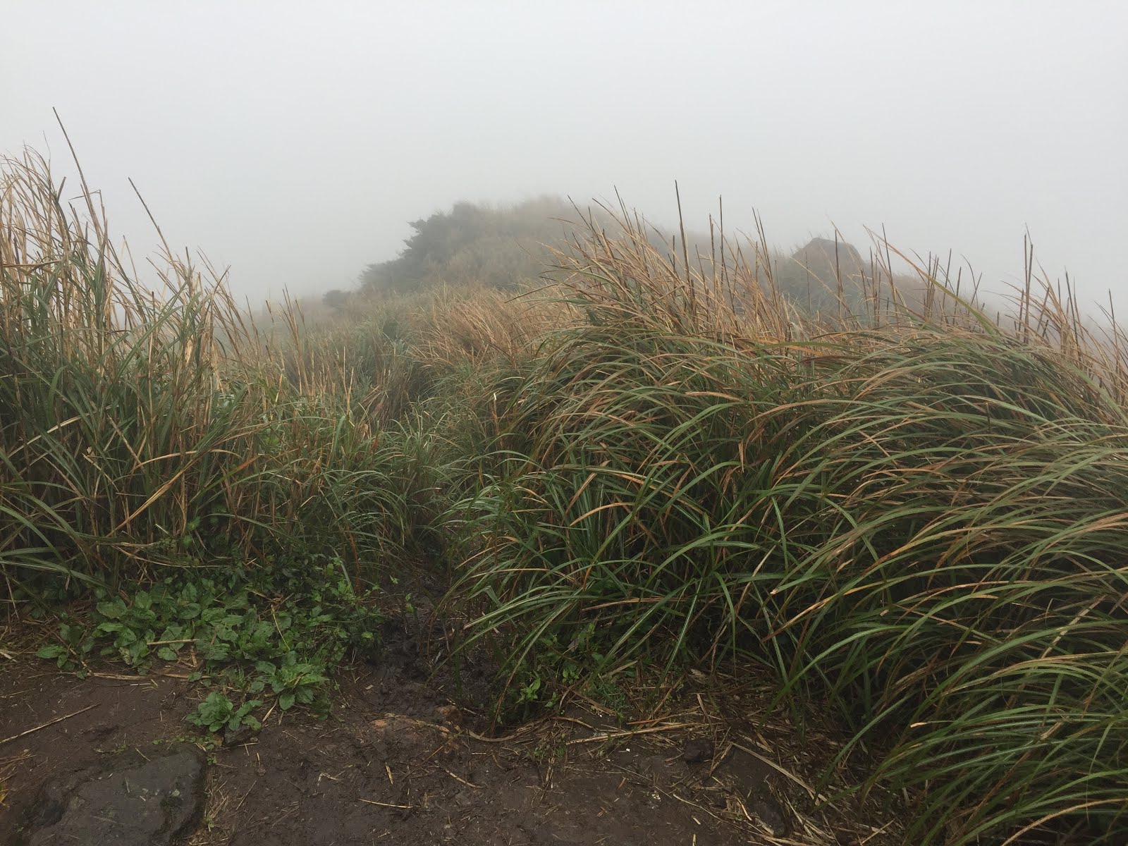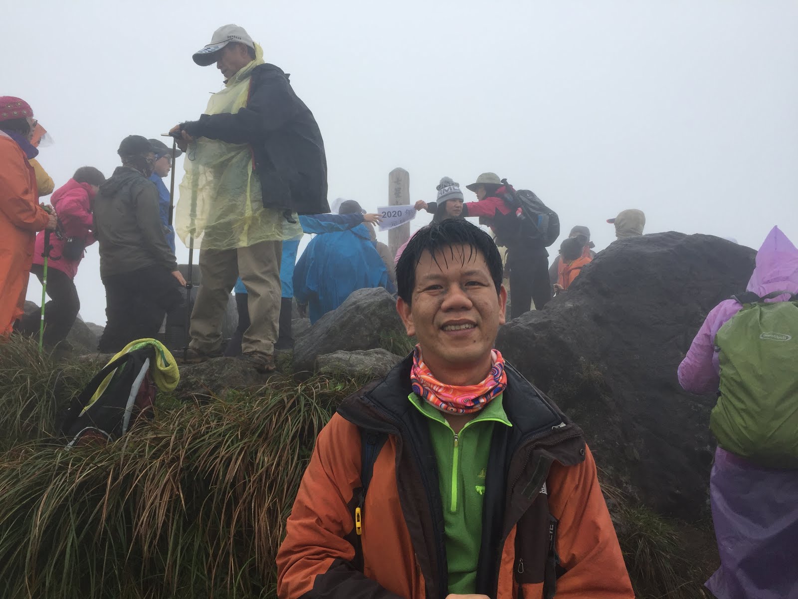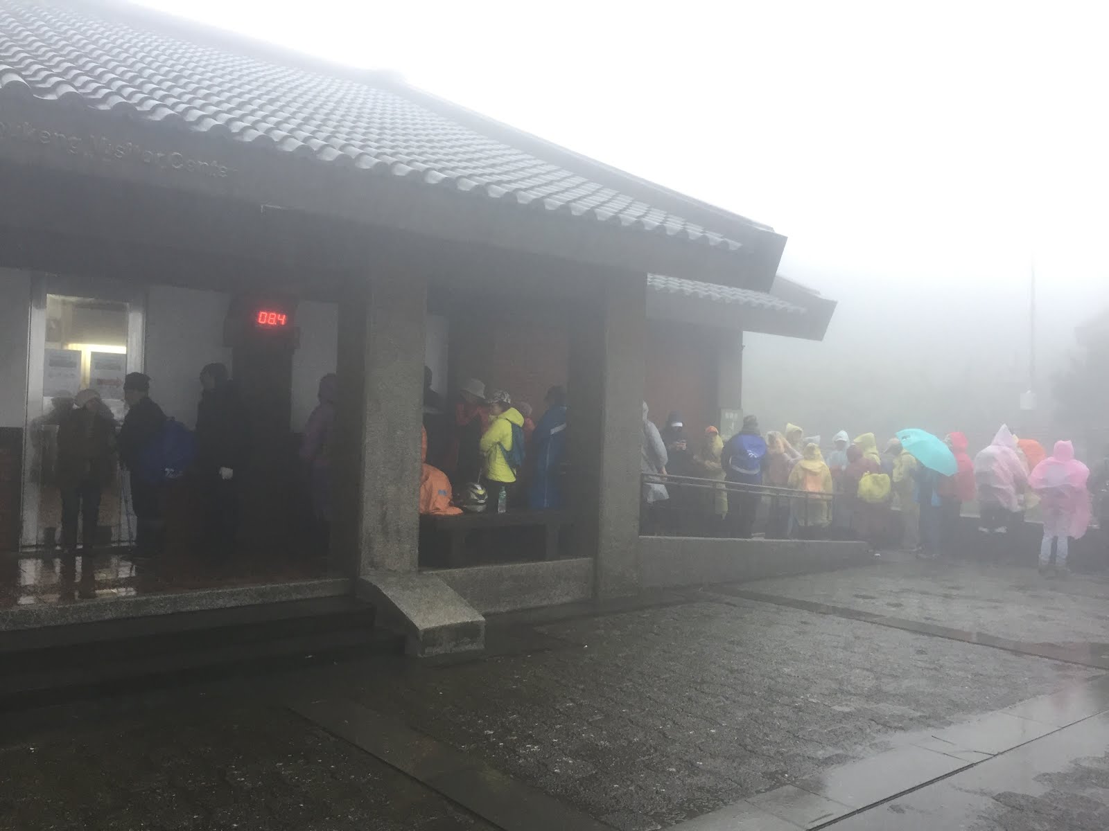 到小油坑停車場時間大約7:20分,霧雨交加,雖然氣溫稍低點,但心想早上8:00開始發放,還有充裕時間拿紀念品兌換卷,先簡裝從停車處到洗手間解放一番!